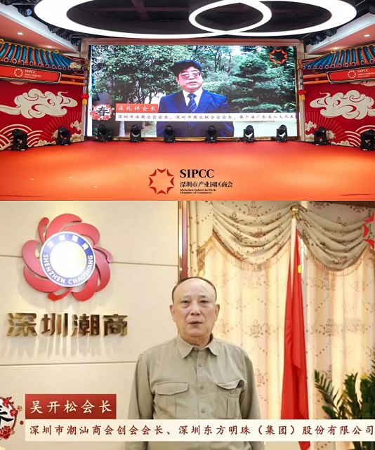 深圳市深商總會、深圳市商業聯合會、第十屆廣東省人大代表莊禮祥會長和深圳市潮汕商會創會會長吳開松會長特別通過視頻送來對深圳市產業園區商會的新春祝福。
