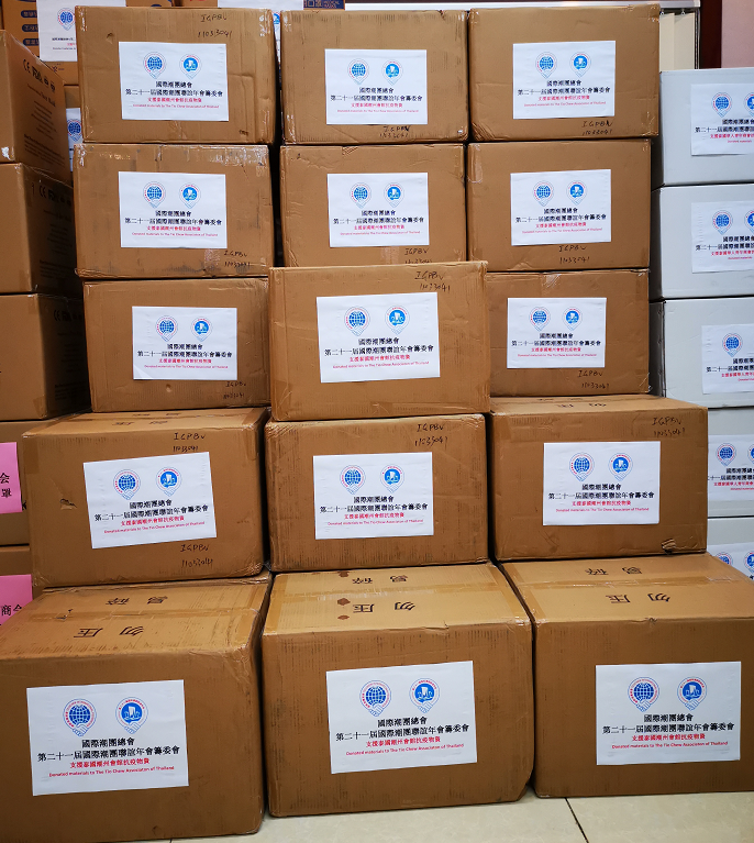 2020年3月初,新型冠狀病毒肺炎在全球各地蔓延並迅速爆發,多個國家抗疫防護物資開始出現緊缺甚至匱乏的狀態。3月15日,國際潮團總會與第21屆國際潮團聯誼年會主辦單位海南省潮商經濟促進會共同發出倡議,號召各地潮團、潮人僑領、會員單位等愛心人士共同行動,捐資捐物,為海外潮籍鄉親伸出援助之手,共度難關。隨後,國際潮團總會為海外69個社團會員單位發出《海外潮團急需抗疫物資調查登記表》,並在國際潮團總會主席洪江遊、執行主席陳幼南的領導指揮下,迅速成立“第21屆國際潮團聯誼年會籌委會抗疫服務志願團”,志願團職責是為海外潮團提供抗疫物資信息和谘詢服務。