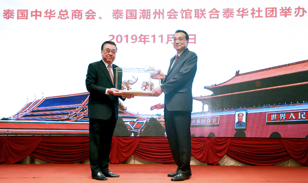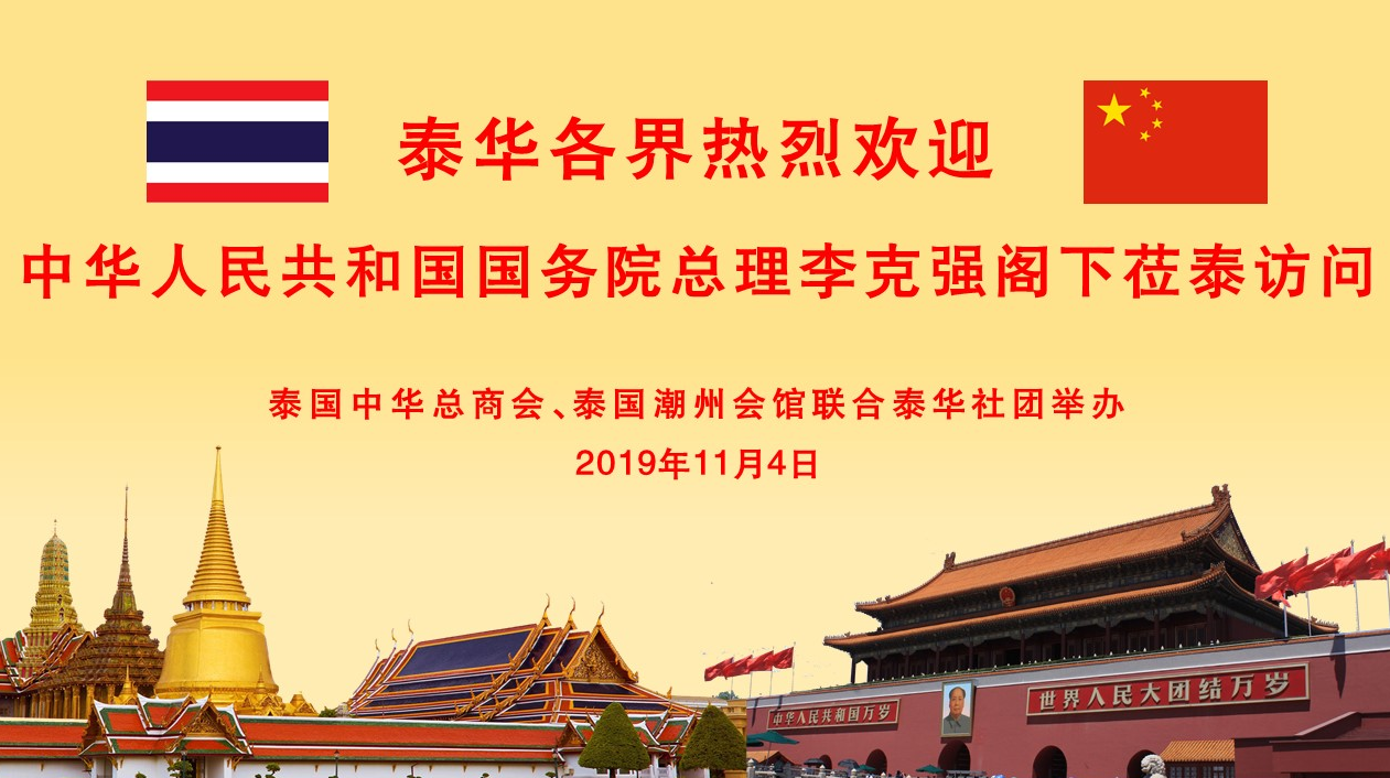 11月4日晚,泰華各界社團熱烈歡迎國務院總理李克強閣下蒞泰訪問,泰國中華總商會、泰國潮州會館聯合泰華社團舉辦歡迎宴會,宴請李克強總理等一行。泰國中華總商會主席陳振治,泰國潮州會館主席黃迨光博士聯合主持公宴大會。