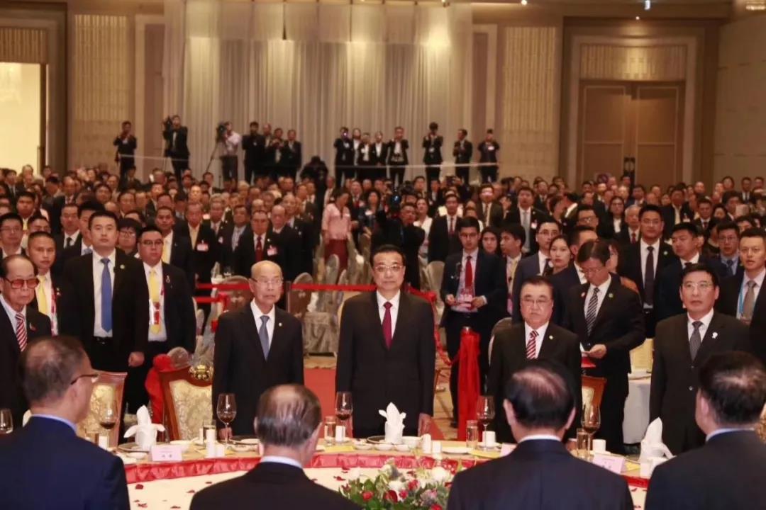 泰國潮州會館主席黃迨光博士宣布:“泰華各界熱烈歡迎中華人民共和國國務院總理李克強閣下蒞泰訪問公宴大會現在開始!”