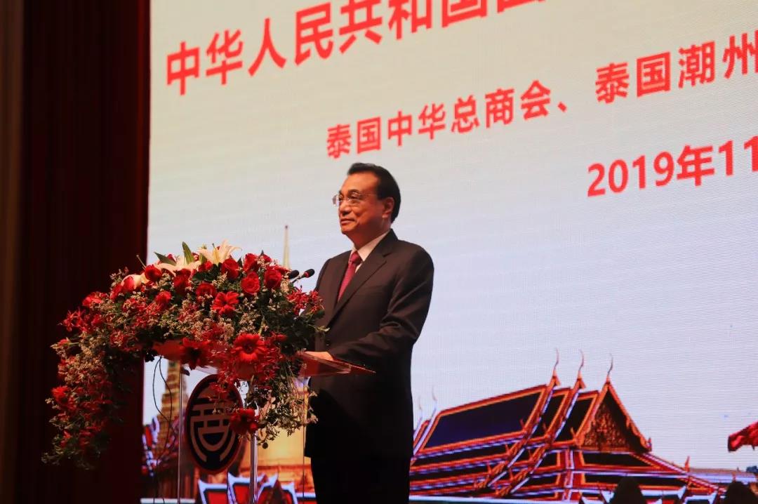 中華人民共和國國務院總理李克強致辭:泰國中華總商會主席陳振治先生,泰國潮州會館主席黃迨光先生,女士們,先生們,朋友們:我很高興六年之後重返故地,六年前訪問泰國社團的時候,也是在這裡,泰國中華總商會,泰國潮州會館上百個泰國華僑,華人的團體為我舉辦了歡迎宴會。今天我們看到當年的大廳裝修一新,正是體現了“苟日新,日日新”的風景。這表明六年來,在泰國的華僑華人,你們的努力,又迎來了新的榮光,我感謝你們的熱情接待,並通過你們向中國華僑華人在泰國的工作,生活的家庭順利和幸福,表示誠摯的祝願。