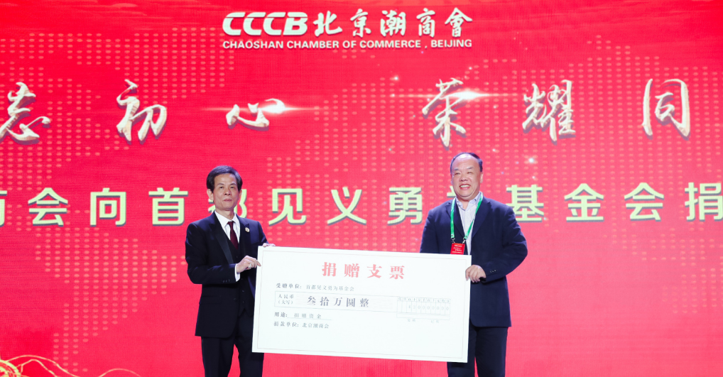 在獎勵學子、扶貧濟困之外,北京潮商會也開始關注“見義勇為”相關的情況。會上,北京潮商會會長、北京市京潮公益基金會主席陳才雄代表北京潮商會向首都見義勇為基金會捐贈支票,就是將支持落在了實處。北京市民政局北京市民政局原副巡視員、首都見義勇為基金會理事長趙森代表首都見義勇為基金會接收支票並表示感謝。