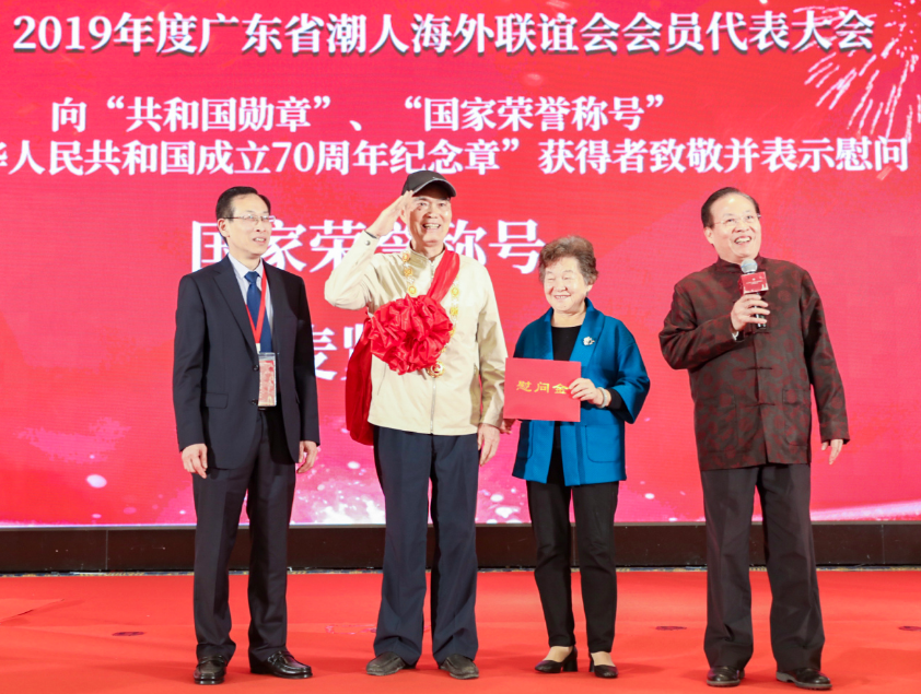 會上,宣讀了省潮聯會對共和國勳章、國家榮譽稱號、慶祝中華人民共和國成立70周年紀念章獲得者的致敬詞。蔡東士會長和黃武副主席為共和國勳章獲得者黃旭華(委託代表楊必成領取)、國家榮譽稱號獲得者麥賢得頒發了慰問金;張汝成中將、黃偉鴻副主任、李統書副主席、鄭木明第一常務副會長、省僑聯黨組成員邵瑾為出席大會的11位紀念章獲得者頒發慰問金。會後,還將由省潮聯會領導專程上門為未出席會議的受致敬者奉贈慰問金。紀念章獲得者杜聯堅先生代表受致敬者作了發言。