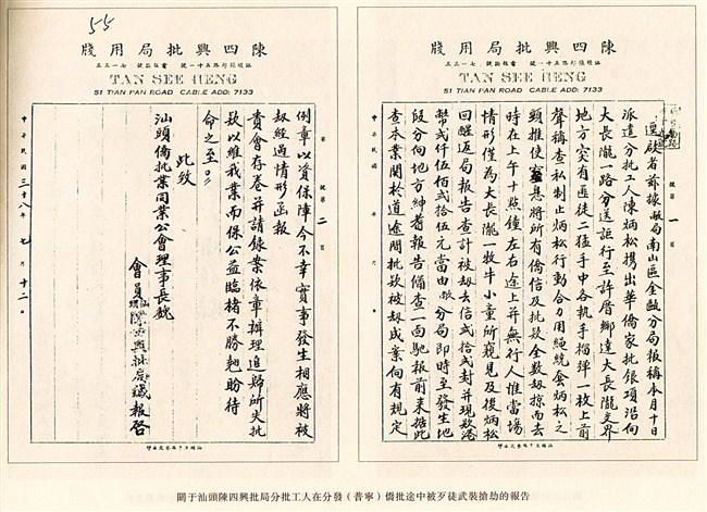 汕頭陳四興批局分批工人在分發(普寧)僑批途中被歹徒武裝搶劫的報告。(陳海忠 攝)