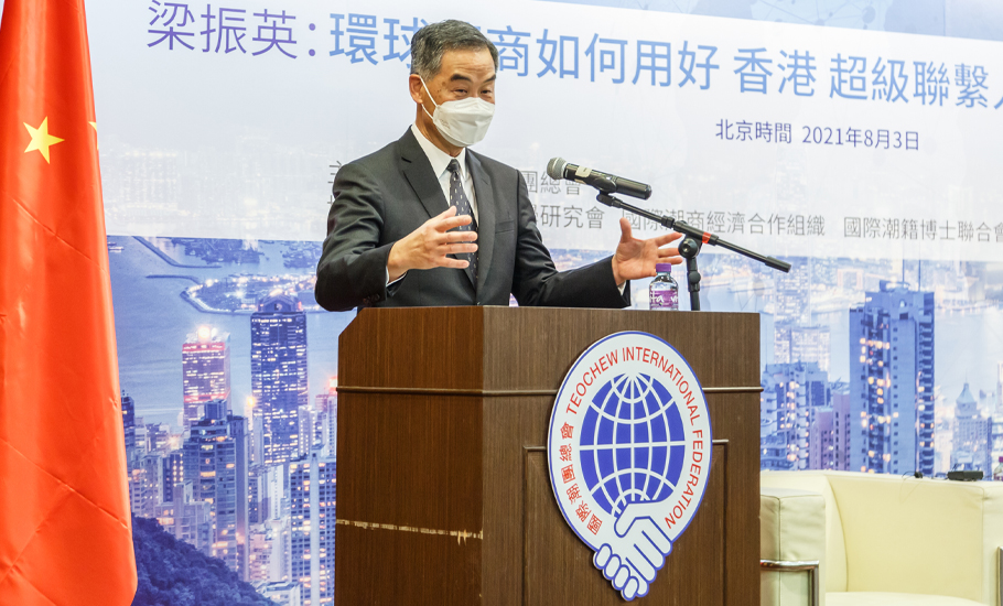 2021年8月3日,由國際潮團總會主辦,國際潮學研究會、國際潮商經濟合作組織、國際潮籍博士聯合會、國際潮青聯合會協辦的高端論壇,於香港潮州會館十樓禮堂成功舉辦,邀請全國政協副主席、香港特別行政區第四任行政長官、一帶一路國際合作香港中心主席梁振英擔任主講嘉賓並作主題演講。