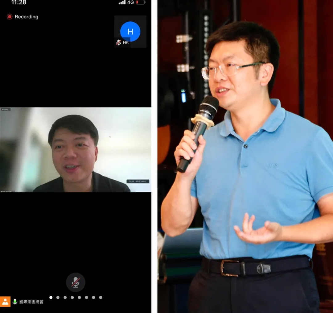 在自由交流環節中,北美代表林銘(美國潮商總會副主席兼青年組主任、美國矽谷科技信息委員會理事長、國際潮青聯合會常務會董)、香港代表朱鼎健(港區全國政協委員、中國外商投資企業協會副會長、香港友好協進會發展基金會主席、香港潮屬社團總會首席會長)、新加坡代表黃亮(新加坡管理大學與卡內基梅隆大學信息管理系統碩士、新加坡潮州八邑會館董事及副總務、青年團署理團長、國際潮青聯合會會董,金融科技與投資行業的從業者)、內地代表張見悅(法學碩士、中國新聞社廣東分社社長,曾任廣東省政協委員、國際潮青聯合會常務副會長)、泰國代表李嘉淳(廣東省政協海外列席委員、泰國華人青年商會會長、國際潮青聯合會常務副會長)、臺灣代表李粵堅(臺灣東南科技大學/電子工程系正教授,國際 SCI 等級期刊的審稿委員,國際潮籍博士聯合會理事、國際潮青聯合會副會長)、澳門代表劉智龍(全國青聯澳區委員、澳門潮汕青年協會理事長、琴澳青年創業就業協會理事長、國際潮青聯合會副會長)、深圳代表李紅梅(國際潮青聯合會副會長、聯合國項目事務署可持續基礎設施投資與創新夥伴關系顧問)等8位世界各地青年代表圍繞創業創新、潮汕文化傳承、企業 ESG 成效評估、發展機遇、資源整合等問題在線上與陳一丹先生交流互動。陳一丹先生耐心細緻、高屋建瓴,一一回答了大家的提問,為青年企業家把握世界機遇、履行社會責任、開拓創新、確立高遠的人生目標提出了極其寶貴的意見和建議。
