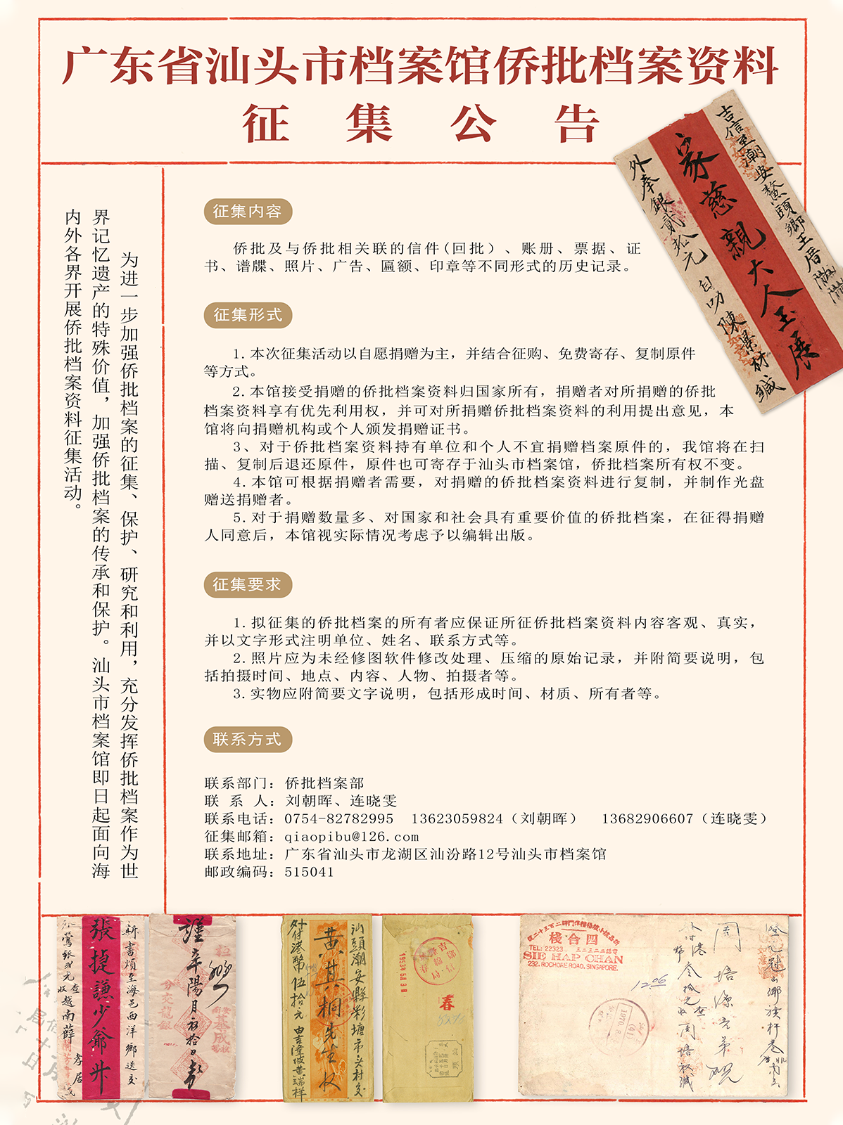 【徵集】廣東省汕頭市檔案館僑批檔案資料徵集公告