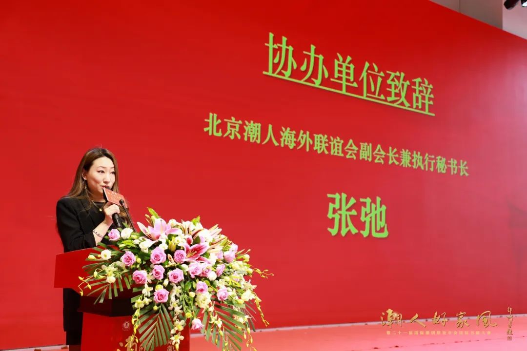 北京潮人海外聯誼會副會長兼執行秘書長張弛作為協辦方代表發言,他介紹道:北京潮人海外聯誼會在北京市僑聯和市社團辦的指導和支持下,遵循「聯絡和團結廣大海內外潮屬社團和各界人士,為國家的經濟建設服務」的宗旨,密切與國際潮團秘書處、海內外潮屬社團、僑領和知名潮人,以及家鄉的聯繫和聯誼,積極開展各項會務工作。