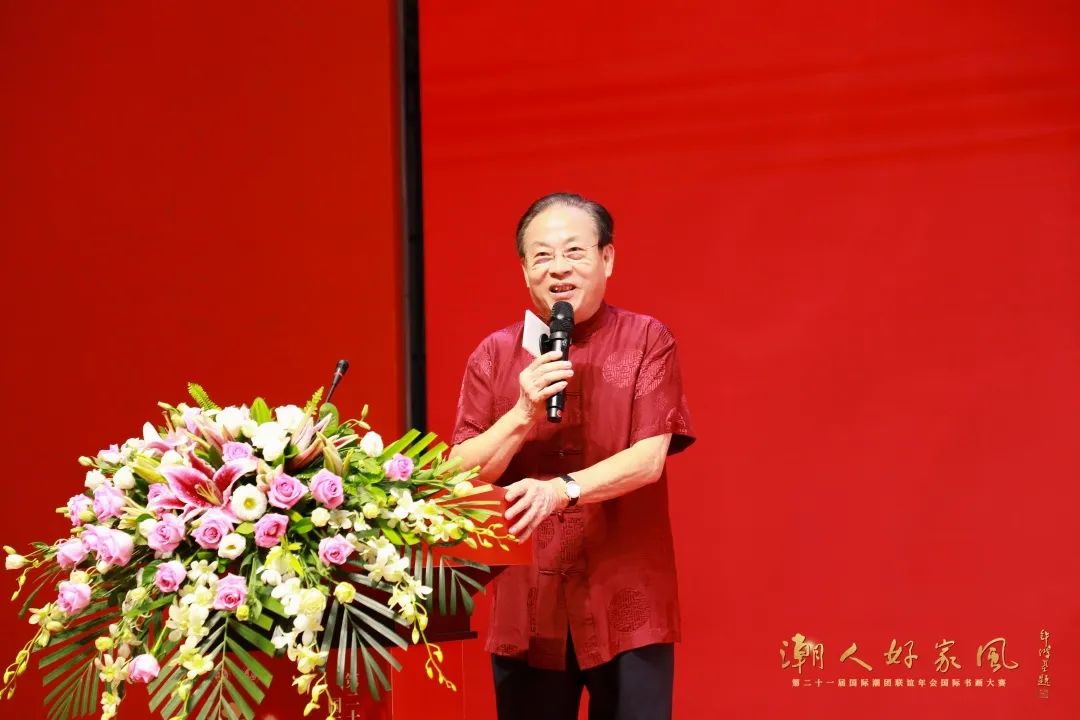 活動開始,國際潮團總會主席洪江遊為大賽啟動儀式致辭,他表示:國際潮團聯誼年會作為全球潮人團體組成的具有重大影響力的國際性盛會,對全球華僑潮人敦睦鄉誼,加強經濟文化交流,促進海內外華僑潮人所在地區經濟貿易的發展,提高海外潮人及華人的地位,共同提高民族認同感起著重要的作用。希望通過舉辦本次「潮人好家風」書畫大賽,讓代代相傳的好家風精神與中華書畫之美緊密結合,展現海內外潮人、華人的精神風貌,以共同的精神文明追求維繫海內外潮人的桑梓情誼。