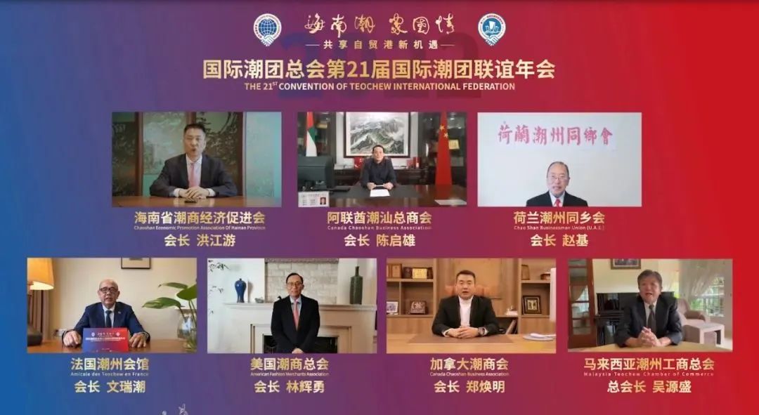 自貿港「一帶一路」高級別經濟合作論壇暨國際潮商經濟合作組織大會,來自聯合國機構、海南省政府、行業協會以及全球30多個國家和地區的158家潮團代表,以線上線下相結合方式出席大會。海內外政商嘉賓圍繞「踐行全球發展倡議,推動綠色可持續發展」主題發表演講。