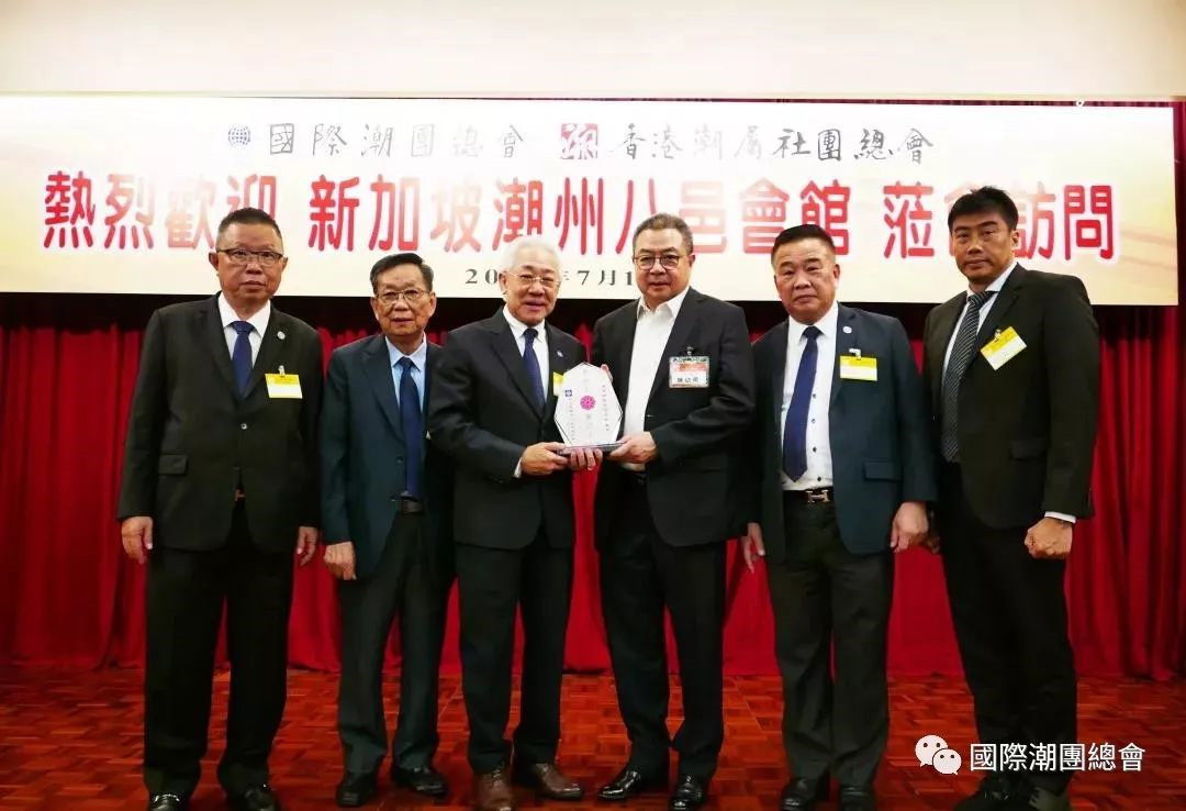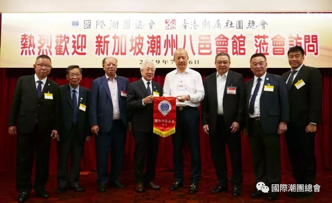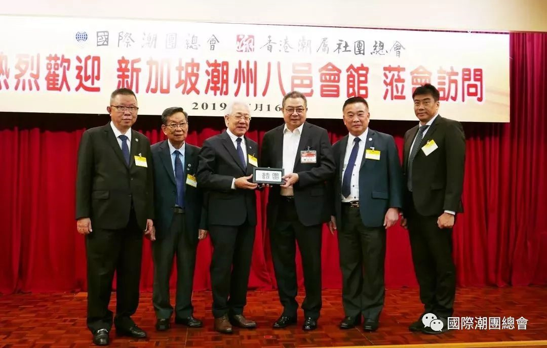 之後,新加坡潮州八邑會館和國際潮團總會、香港潮屬社團總會互贈紀念品並拍照留念。宴會期間,大家相談甚歡,具有潮汕特色的菜式甚受新加坡潮州八邑會館代表團喜愛。儘管居住海外,大家都依然鐘情家鄉美食。嘗遍世界各國美食,亦念念不忘家鄉美食,愛喝香濃的咖啡,亦愛品茗清香的功夫茶,可以講流利的英文粵語,亦可以是普通話潮州話,傳統與現代,中式與西式,和諧融合於一體。