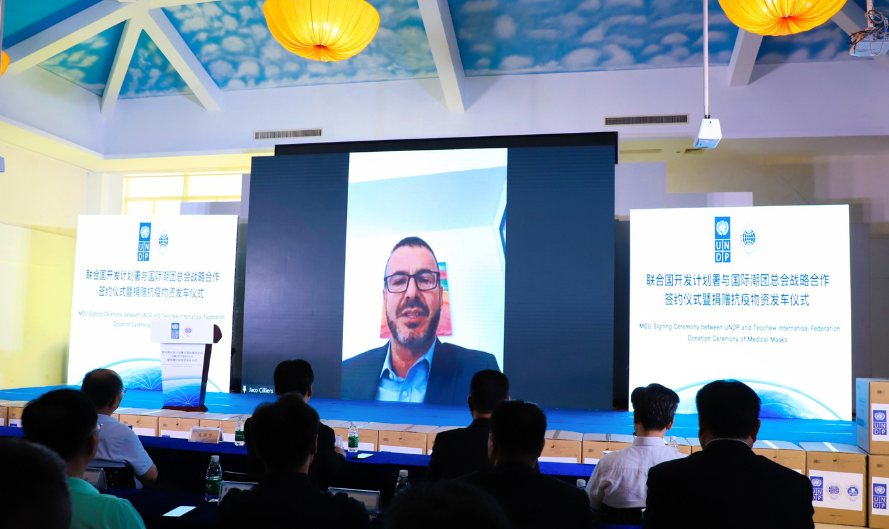 簽約儀式上,聯合國開發計劃署曼谷區域中心負責人Jaco Cilliers代表UNDP和聯合國對潮團捐贈100萬個口罩表示感謝,他表示全球疫情不僅僅是通過政府公共部門的力量能夠解決的,需要企業社團和社會各界的廣泛參與。此次潮團捐贈,是全球商業的機構與聯合國開發計劃署共同合作共同抗疫的案例,對全球將產生深遠影響。今天是聯合國開發計劃署與國際潮團總會全面合作的第一步,他希望未來更多的潮團力量參與全球可持續發展的議程,開展深入合作。