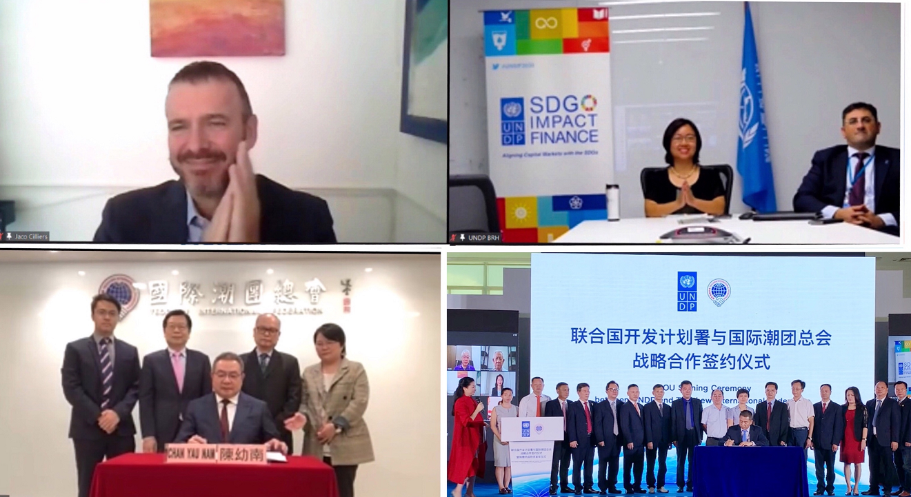 2020年9月23日,國際潮團總會通過線上簽署與聯合國開發計劃署的合作備忘錄,雙方正式建立戰略合作夥伴關係。因受全球疫情影響,簽約儀式通過網路全球連線30多個國家和地區共同參與直播見證。活動由聯合國開發計劃署可持續金融傳播公益顧問李紅梅主持。