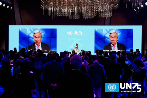 聯合國秘書長古特雷斯通過視頻連線活動現場發言,他表示75年來,聯合國為實現《憲章》的長久願景作出了不懈努力;維護和平、促進合作、創造條件提高人民的生活水準。今年,全球遭遇新冠肺炎疫情巨大衝擊。在世界各國為保障其人民的生命安全和生計發展努力之際,聯合國決心建設一個更公平、更可持續的後疫情世界。