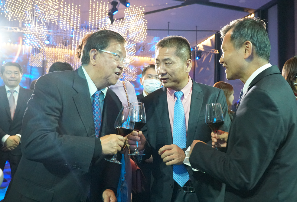 國際潮團總會主席洪江遊(左三)第21屆國際潮團聯誼年會執行主席劉漢惜(右二)原外經貿部部長龍永圖(左二)
