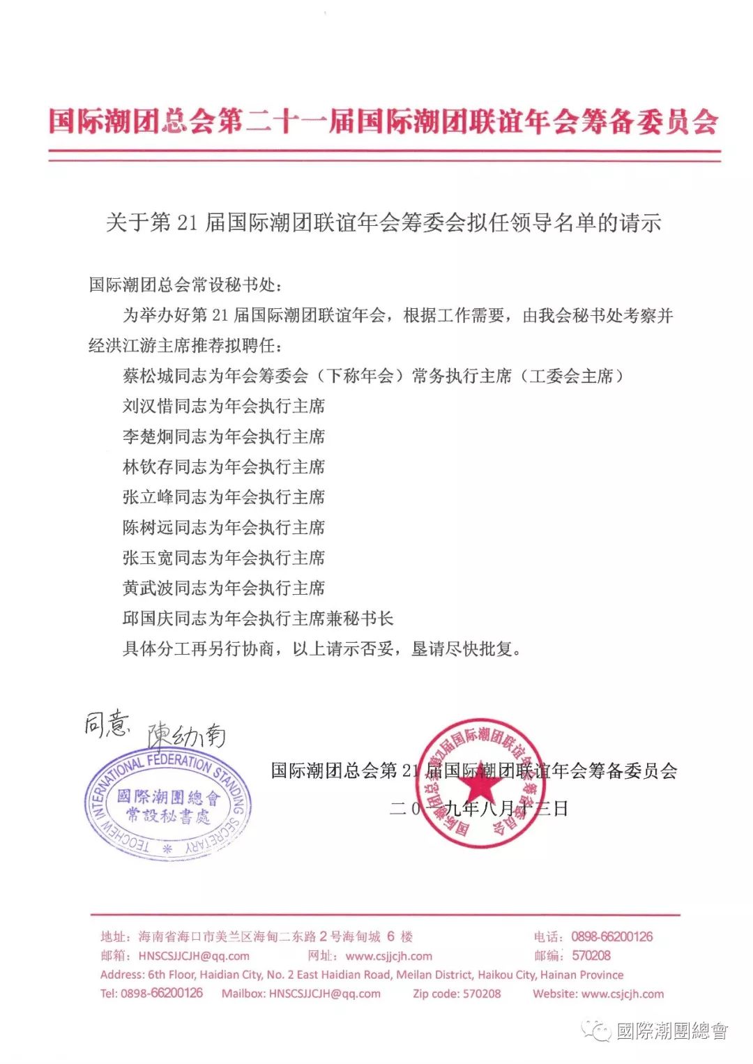關於第21屆國際潮團聯誼年會籌委會聘任領導的通