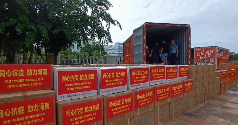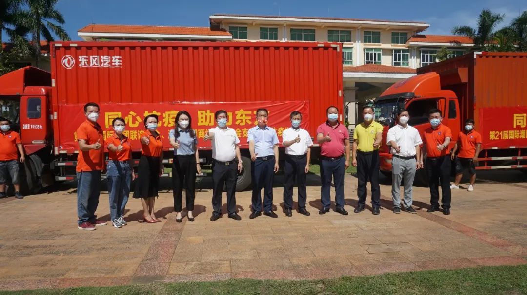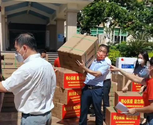 2022年8月18日上午,由海南省潮商經濟促進會、第21屆國際潮團聯誼年會組織發起的“馳援海南五市縣抗疫物資發車儀式”在康芝藥業海南總廠隆重舉行。上午10時,6輛裝滿應急抗疫物資的大貨車徐徐駛出藥谷三路康芝藥業東門廣場,分別開往三亞、東方、臨高、儋州、樂東五市縣,全力馳援海南抗疫。本次捐贈的應急物資包括酒精、消毒液、醫用隔離面罩、醫用手套、醫用防護服、醫用口罩等防疫用品以及餅乾、麵包、泡麵、飲用水等生活用品,總價值80多萬元。