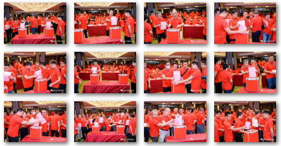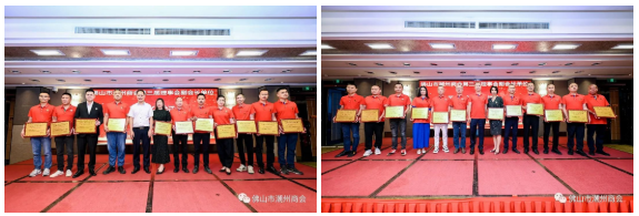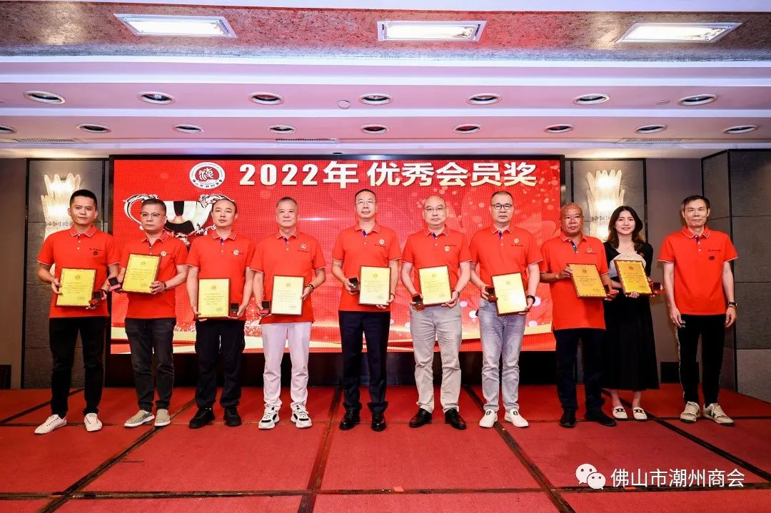 2022年,商會載譽前行,成績屬於每一位為商會奉獻的企業家。會上,第二屆理事會常務副會長兼黨支部書記許宏生向獲得「佛山市潮州商會2022年度優秀會員獎」稱號的企業家頒發了獎牌和由王承忠會長出資贊助訂製的純金會徽。