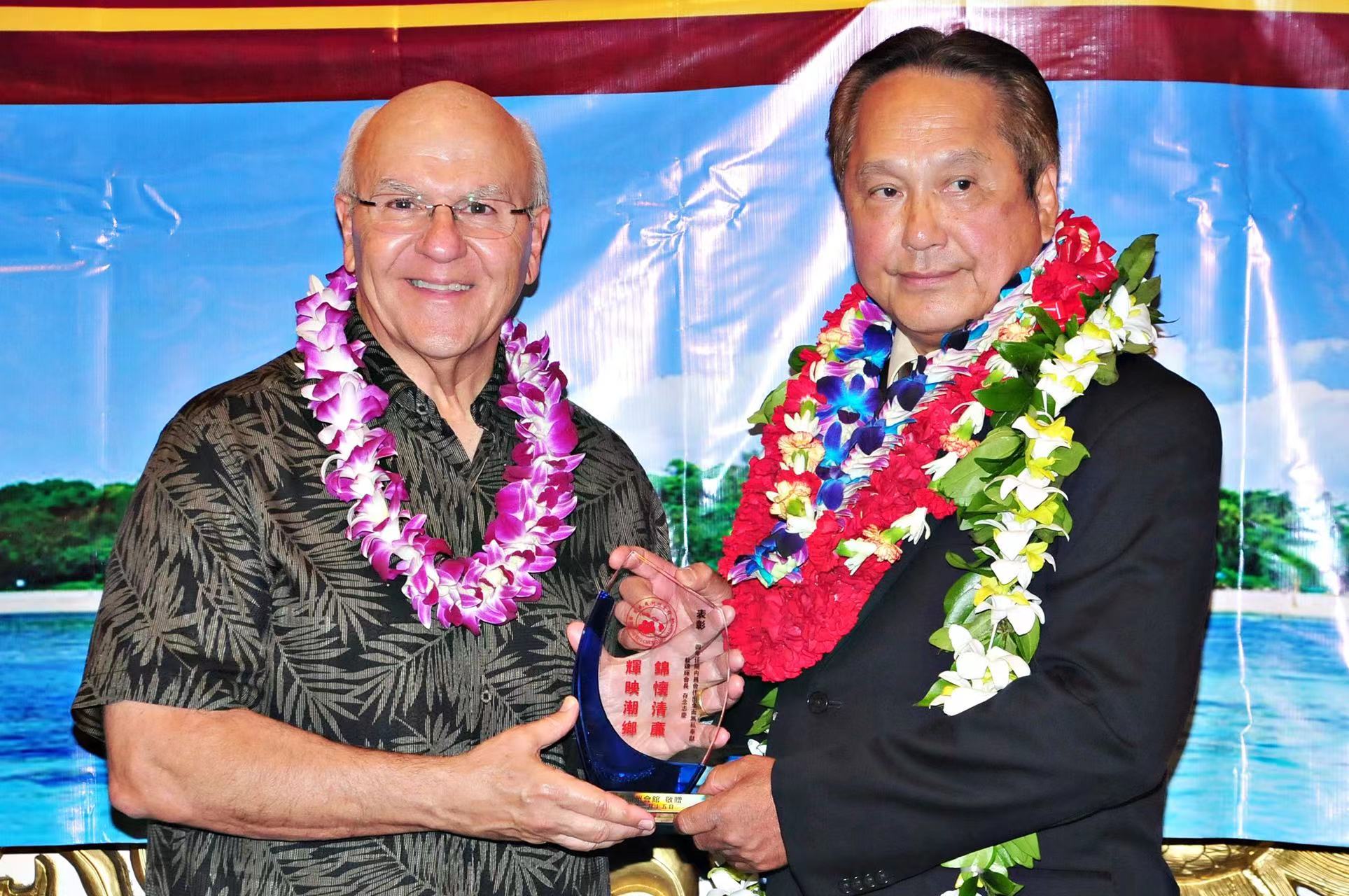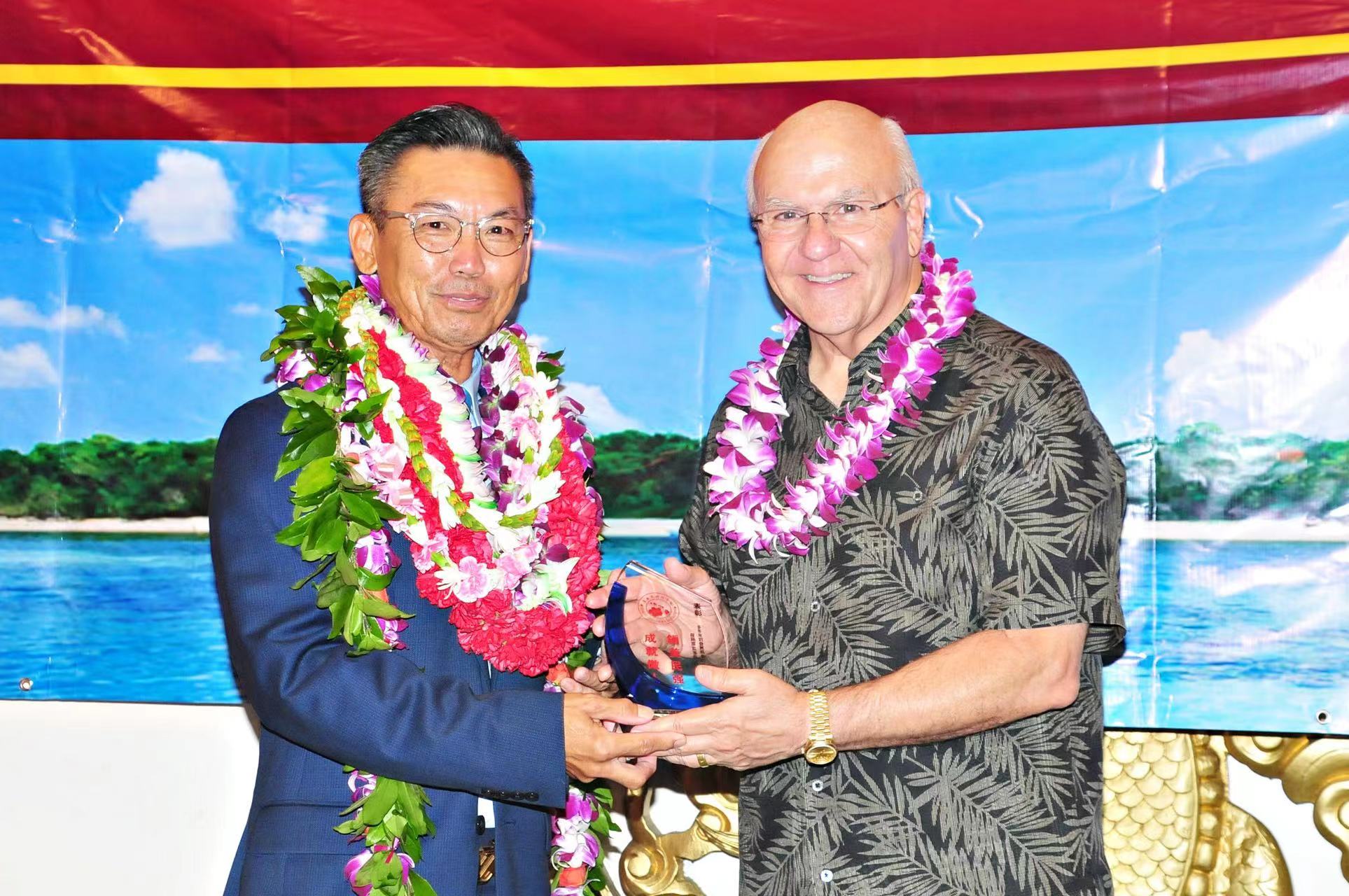 市長頒贈紀念錦牌給夏威夷潮商會會長杜錦輝