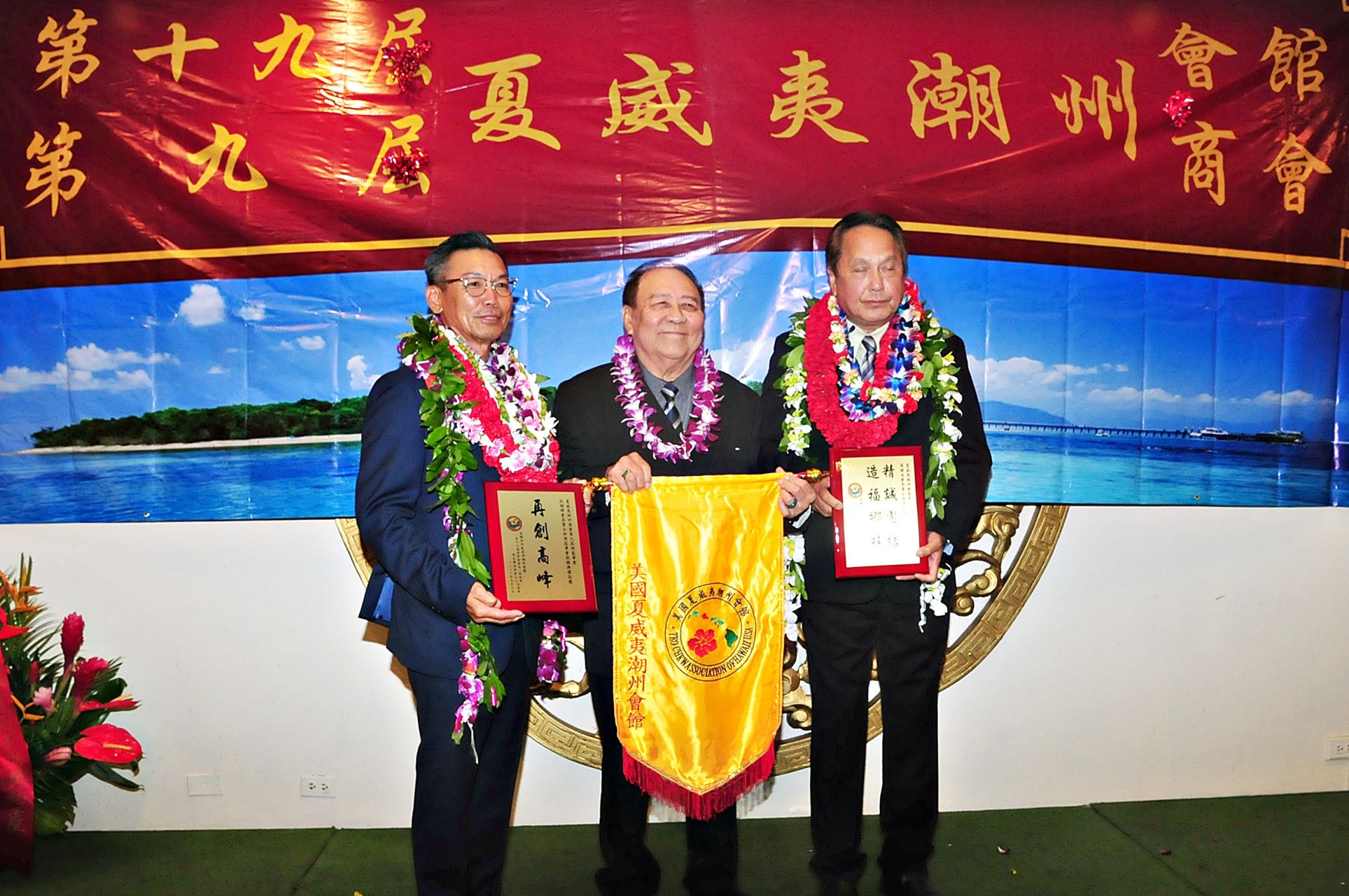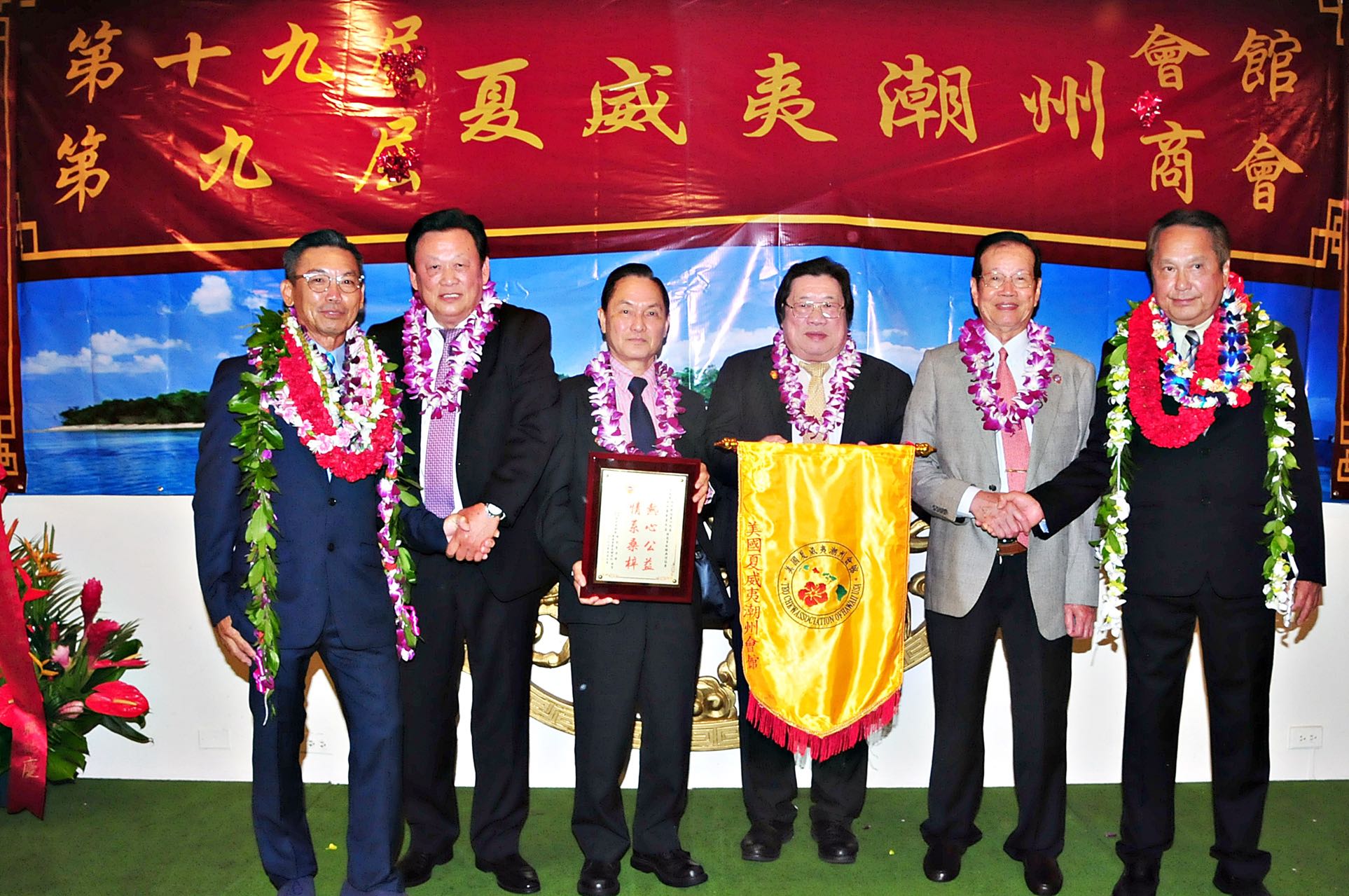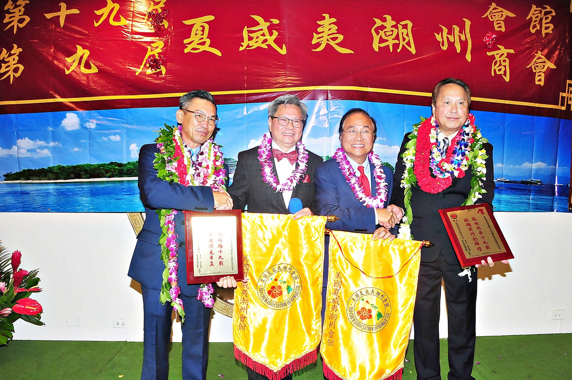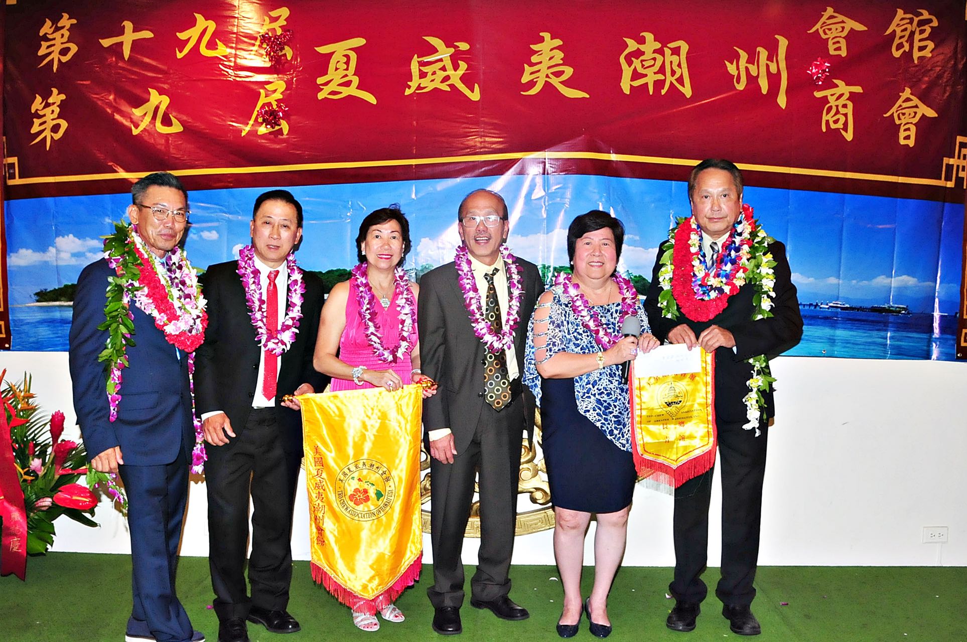 當地政府夏威夷州市長RICK BIANGIARDI親臨致賀。美國潮商總會三位執行主席翁漢豐、李漢強、孫偉根也不辭辛勞,飛臨晚會致賀。到賀貴賓還有美國紐約潮州會館代表團、費城潮州會館代表團、德州潮州會館代表團、美京潮州會館代表團、聖荷西潮州會館代表團、南加州潮州會館代表團等,還有來自地方友會十多個,如中華總會館、中華總商會、福建同鄉會等,賓主近300人歡聚一堂,與潮州兩會同慶。當晚6時,各路貴賓,賓主濟濟一堂,衣香鬢影,摩肩接踵,歡聲笑語,一片喜氣洋洋,此情此景為近年罕見。一些友會表示,難得參加此一盛會。潮州兩會實為一成功會社!