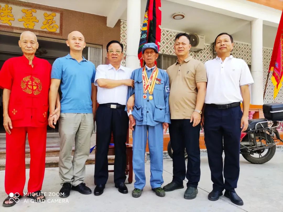 (第一排從左至右分別是一級功臣張自光同志,抗美援朝老戰士黃美才同志、抗戰老兵邱海包同志、抗美援朝老戰士林再福同志、戰鬥英雄韋炎輝同志。)