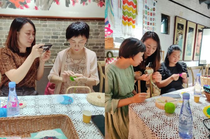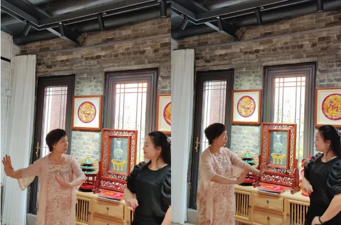 在手鉤花製作完成後的小插曲,嘉賓們開始才藝展示,兩位美麗的姐姐在臺上一展歌喉,動聽的戲曲加上優雅流暢的舞蹈動作,現場所有人都對此讚歎不已!