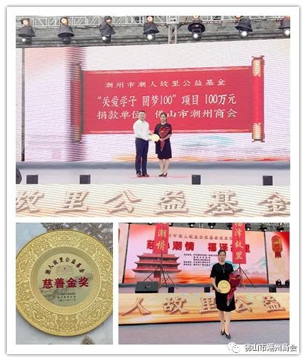 活動現場還舉行了潮州市潮人故里公益基金捐贈和頒獎儀式。潮州市領導何曉軍、曾曉佳、陳史青、宋鐵、陳炫秋為獲獎的集體和個人代表頒獎。佛山市潮州商會捐贈100萬元,定向用於潮州市勵志獎學活動,榮獲潮人故里公益基金慈善金獎。