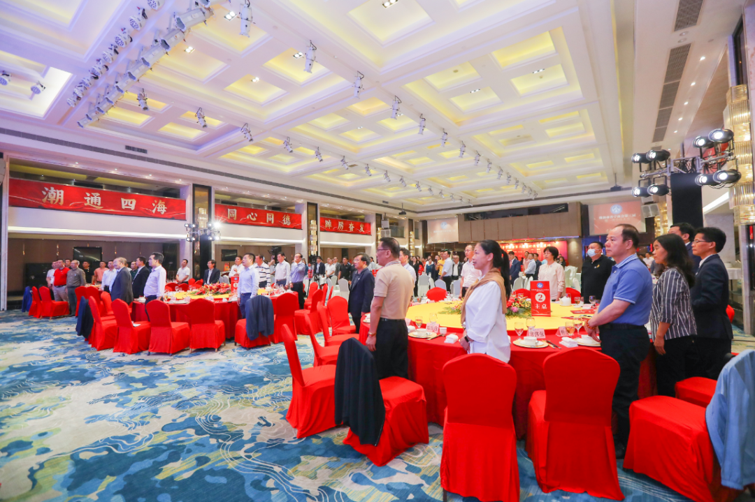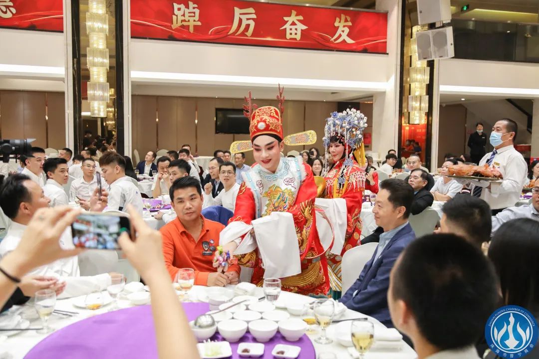 慶祝晚宴上商會領導一同上臺祝酒,伴隨著歡樂喜慶的音樂,大家歡喜相期,互致問候,共品美酒佳餚,共話桑梓情深,一同舉杯暢飲,表達了對商會的美好祝願和期待!