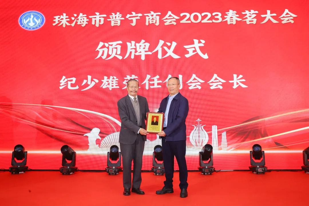 歷史見證壯闊的征程,時間鐫刻奮鬥的豐碑。普寧商會歷經8年豪情歲月,在紀少雄創會會長卓越的帶領下,行穩致遠,已經成長為頗具影響力的潮團品牌。為了向紀少雄會長致敬,第三屆會長蘇攢淘代表商會向紀會長授予「珠海市普寧商會創會會長」榮譽牌匾。