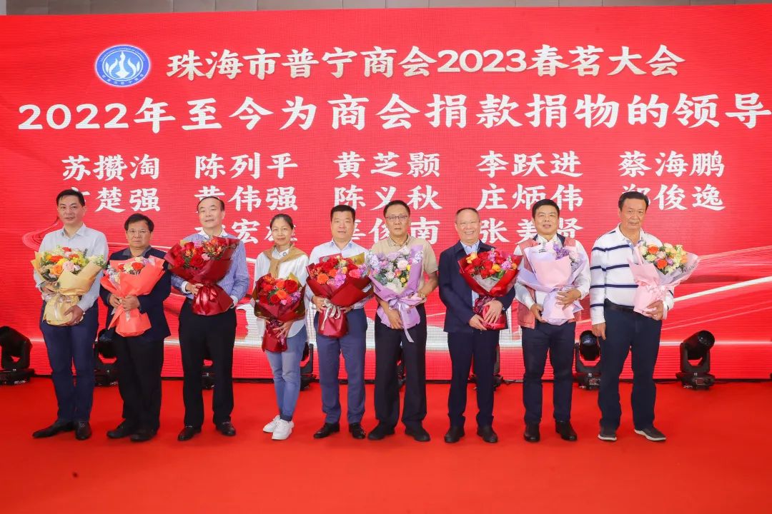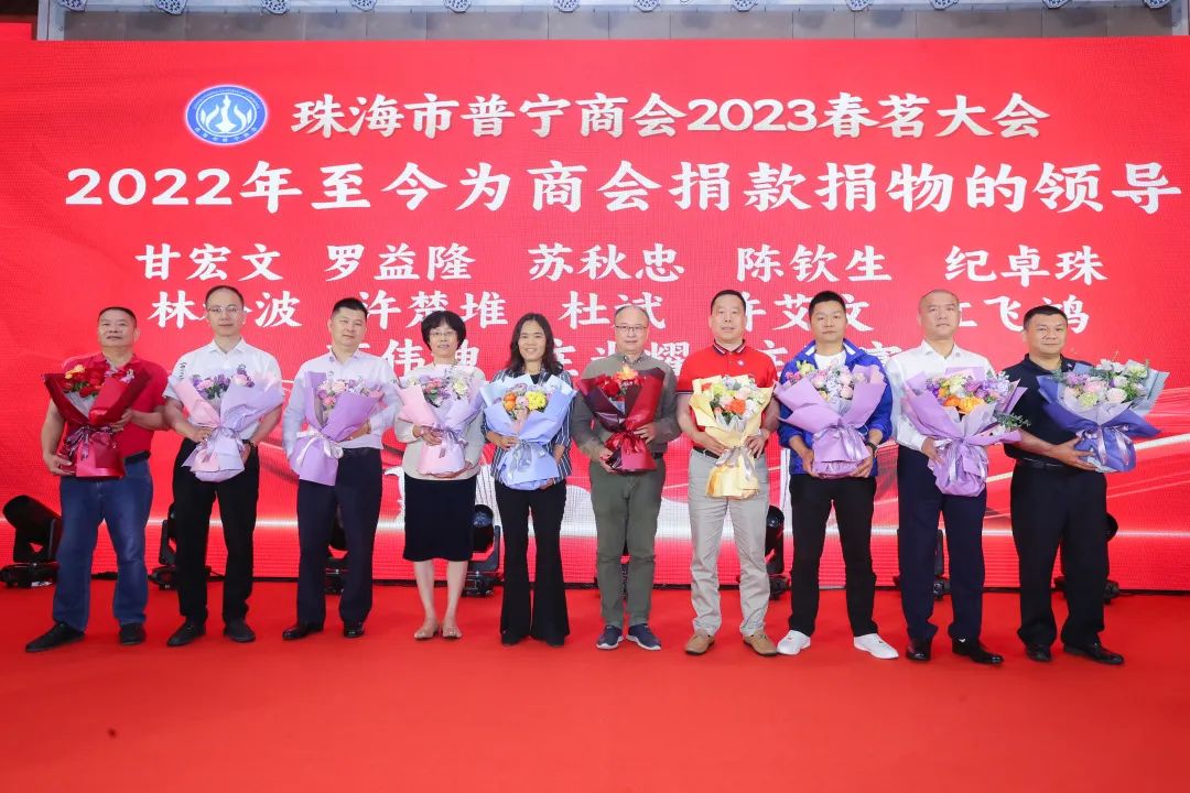 商會捐款捐物的領導普寧商會是個團結溫暖的大家庭,商會每次開展活動,都得到商會領導的慷慨贊助,在他們的大力支持下,每場活動都辦得有聲有色,精彩紛呈。在晚會上,青年代表用最美麗的鮮花向2022年至今為商會捐款捐物的領導致敬。