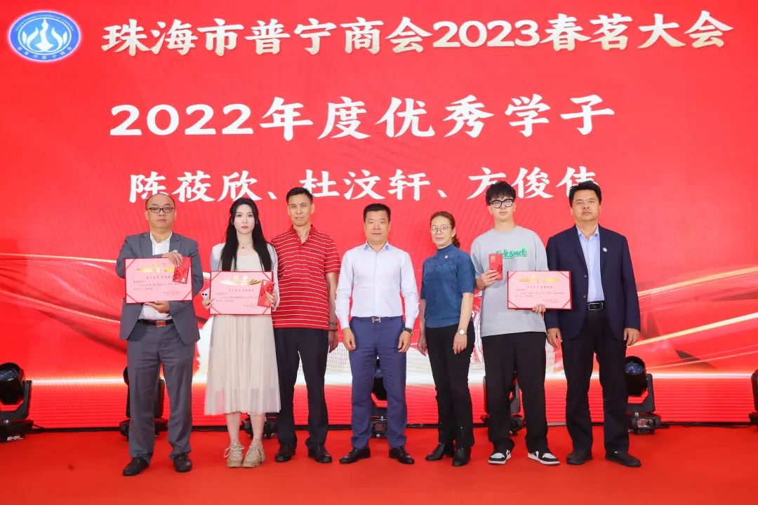 2022年度優秀學子頒獎儀式潮汕代有人才出,重視子女教育、培養人才是潮汕的傳統。普寧商會建立了助學獎學機制,對考上重點高中和大學的會員子女給予獎勵。晚會舉行了2022年度優秀學子頒獎儀式,第三屆監事長黃芝顥先生為考上大學的優秀學子陳筱欣、杜汶軒、方俊偉頒發榮譽證書和獎學金。