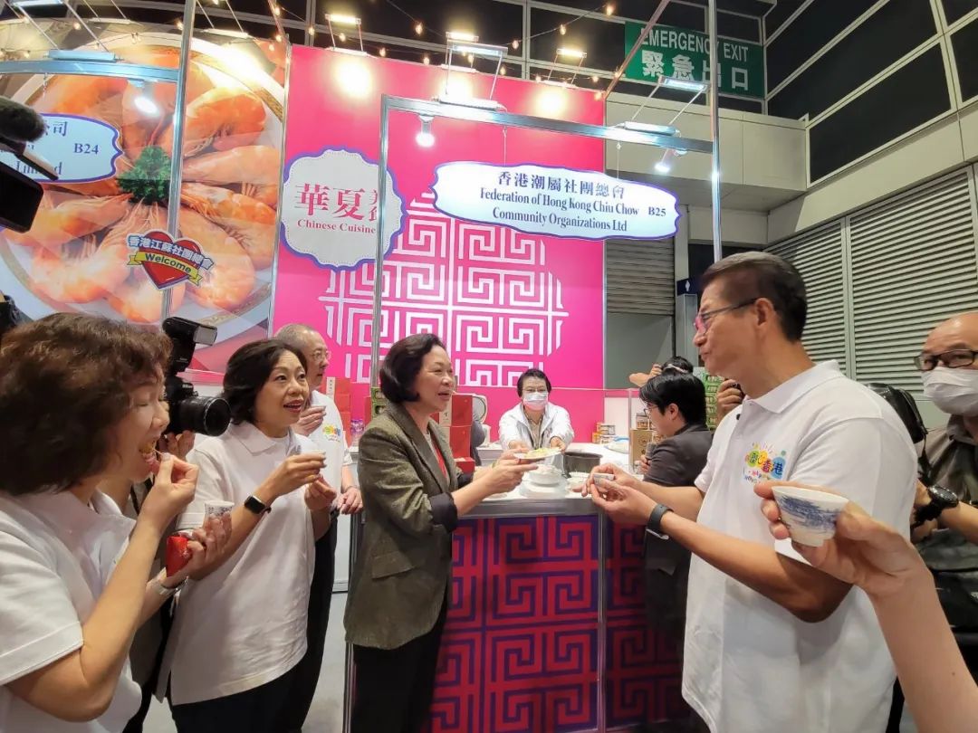 財政司司長陳茂波、民政及青年事務局局長麥美娟等主要政府官員,主持了兩場大型活動的開幕儀式,並與民政事務總署張趙凱渝署長分別前來香港潮屬社團總會攤位打氣。香港潮屬社團總會主席陳振彬,監事會主席林建岳,常務副主席馬介欽、莊學海、陳愛菁,副主席沈振虎等親臨本會攤位,歡迎參加導賞團的官員和嘉賓,常務副主席陳愛菁向各位嘉賓介紹了潮汕特色美食並向市民推介潮汕美食,場面熱鬧,氣氛熱烈。