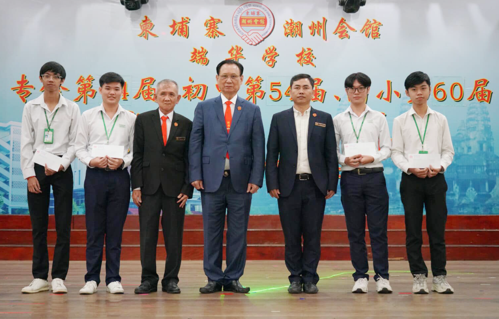 柬埔寨潮州會館會長劉明勤閣下指出,同學們在端華的校園裏,在學校良好校風的薰陶下,在老師們的耐心指導下,勤學苦讀,奮發努力,完善了人格,豐富了知識,鍛煉了體能,度過了人生最美好、最關鍵、也是最難忘的時光。轉眼之間,你們己經完成了學業,即將畢業離校,雖然只有短短數年,但我們為曾經擁有你們這樣的學生而感到無比驕傲。