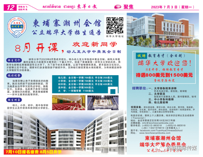 只要學生家長和社會與論給予我們鼎力的支持多為下一代孩子們前途著想,端華大學必將在柬埔寨的華文教育格局中發擇著骨幹作用。
