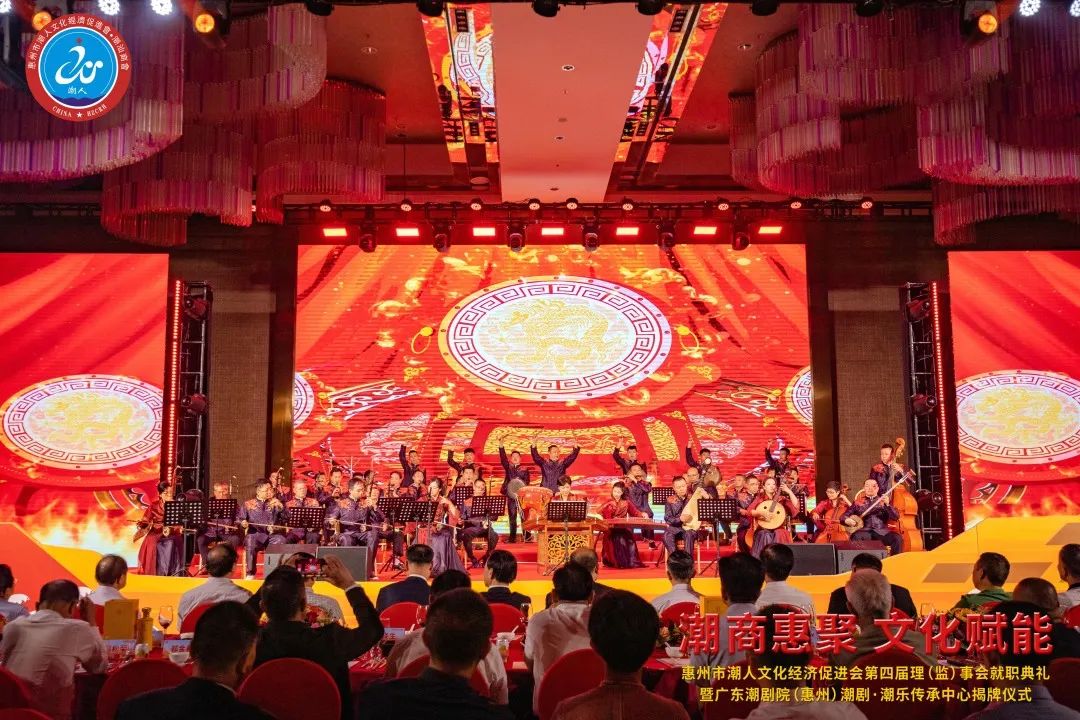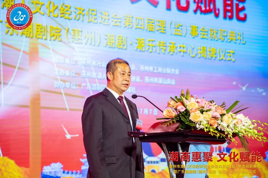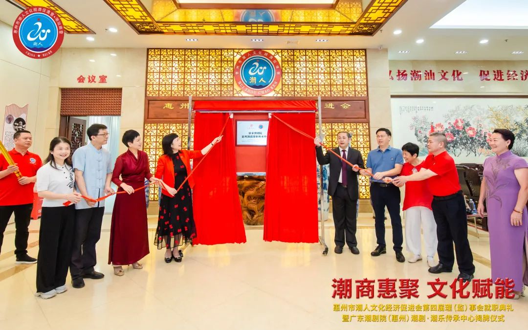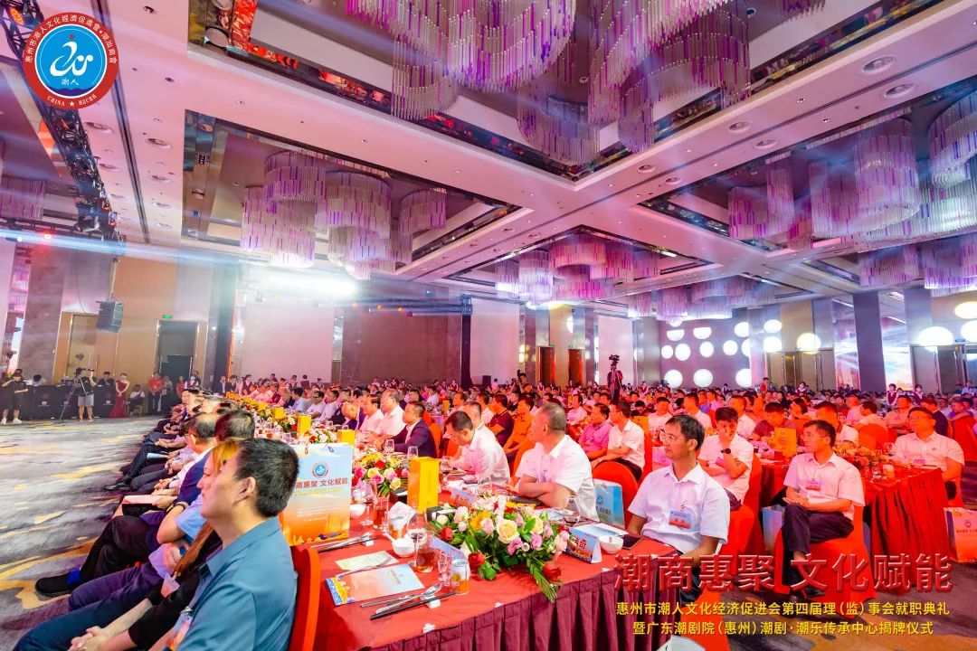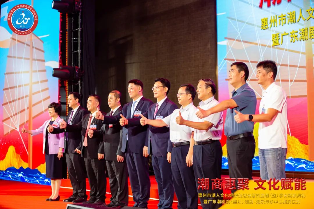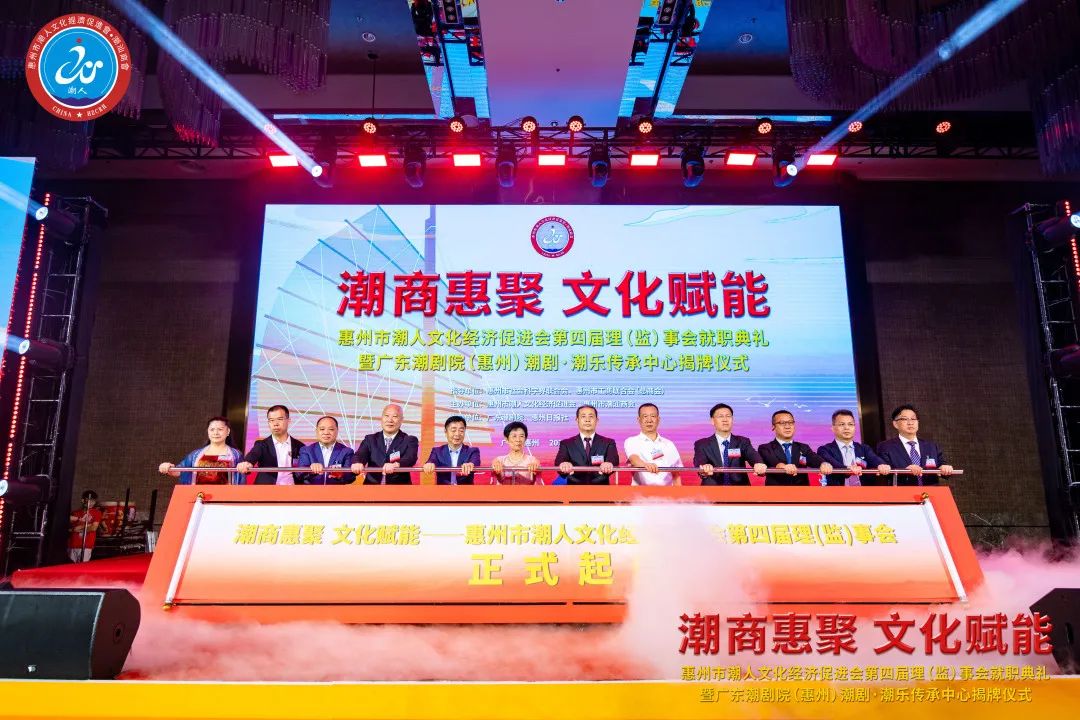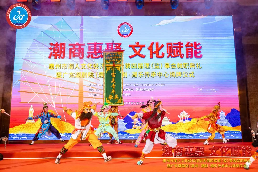 2023年7月7日晚,由惠州市潮人文化經濟促進會主辦、惠州市社會科學界聯合會和惠州市工商業聯合會(總商會)指導、廣東潮劇院和惠州日報社協辦的「惠州市潮人文化經濟促進會第四屆理(監)事會就職典禮暨廣東潮劇院(惠州)潮劇·潮樂傳承中心揭牌儀式」在惠州市富力萬麗酒店隆重舉行。中國僑聯、國際潮團總會、惠州市政協、市委統戰部、市民政局、市工信局、市商務局、市社科聯、市工商聯、市僑聯等有關單位領導以及潮汕四市政府代表、工商聯、廣東潮劇院等單位領導出席大會,來自國際潮團組織、全國各地商會社團,以及惠州、汕頭、潮州、揭陽、汕尾的潮汕鄉賢、企業家等600餘人歡聚一堂,見證新一屆理(監)事會履新就職,共謀潮商發展大計。