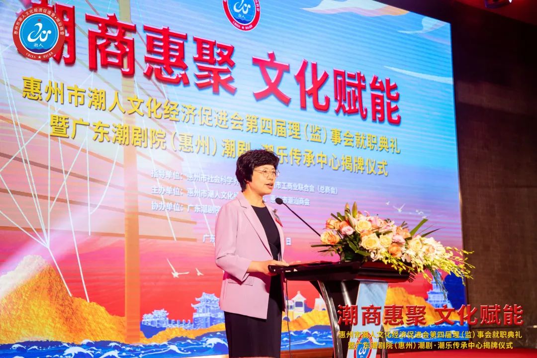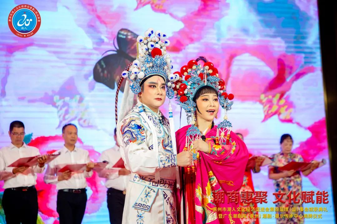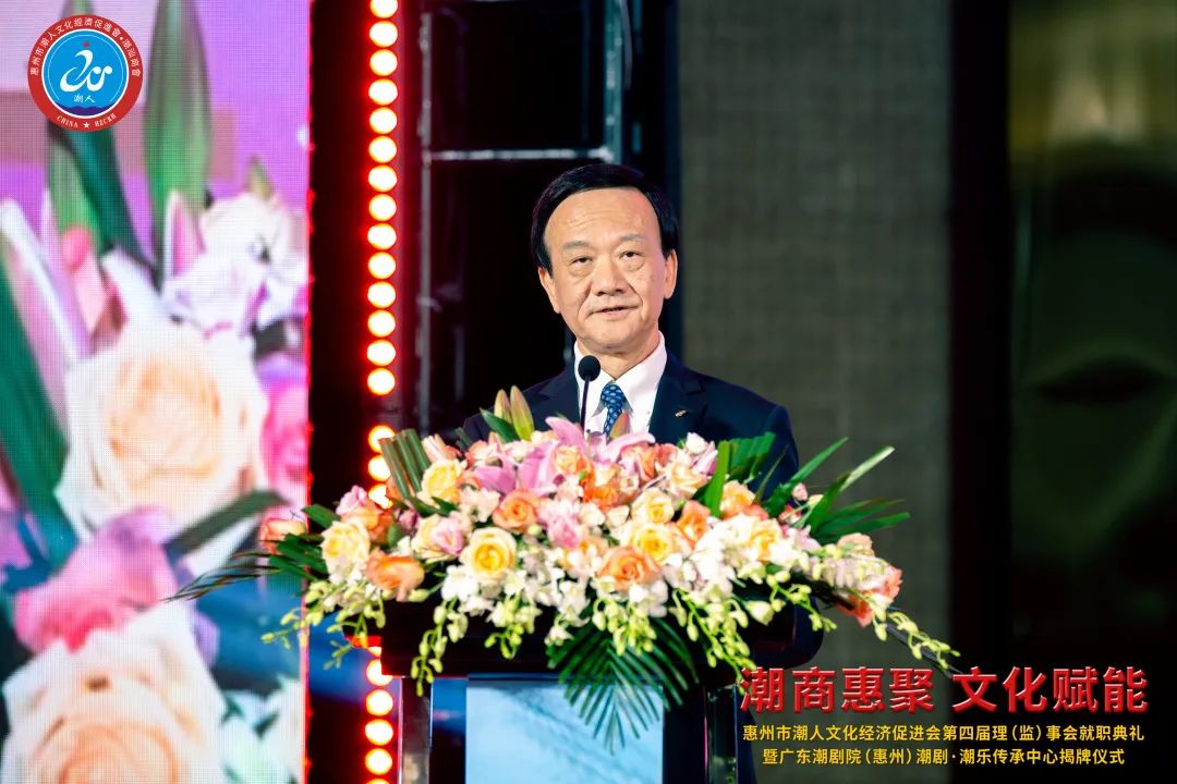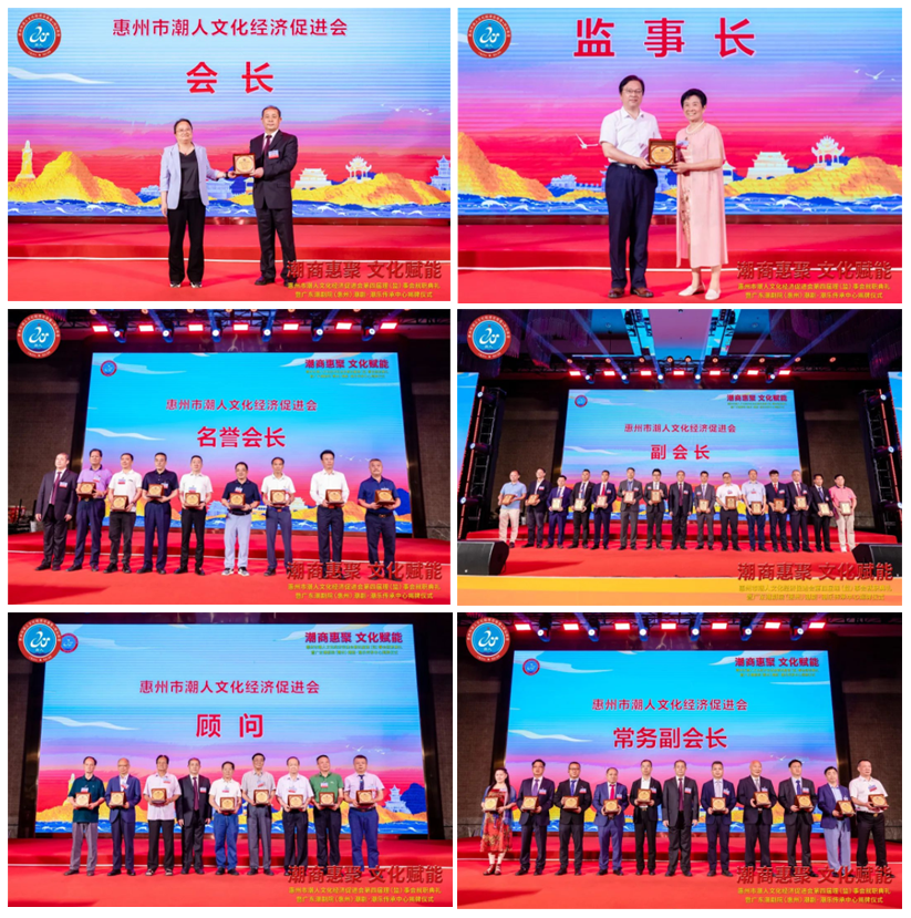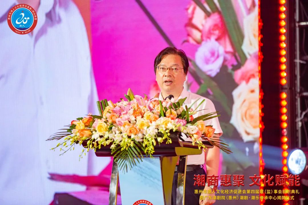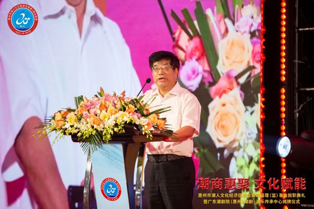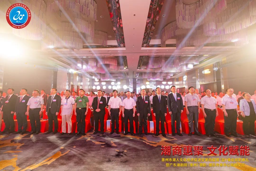 2023年7月7日晚,由惠州市潮人文化經濟促進會主辦、惠州市社會科學界聯合會和惠州市工商業聯合會(總商會)指導、廣東潮劇院和惠州日報社協辦的「惠州市潮人文化經濟促進會第四屆理(監)事會就職典禮暨廣東潮劇院(惠州)潮劇·潮樂傳承中心揭牌儀式」在惠州市富力萬麗酒店隆重舉行。中國僑聯、國際潮團總會、惠州市政協、市委統戰部、市民政局、市工信局、市商務局、市社科聯、市工商聯、市僑聯等有關單位領導以及潮汕四市政府代表、工商聯、廣東潮劇院等單位領導出席大會,來自國際潮團組織、全國各地商會社團,以及惠州、汕頭、潮州、揭陽、汕尾的潮汕鄉賢、企業家等600餘人歡聚一堂,見證新一屆理(監)事會履新就職,共謀潮商發展大計。