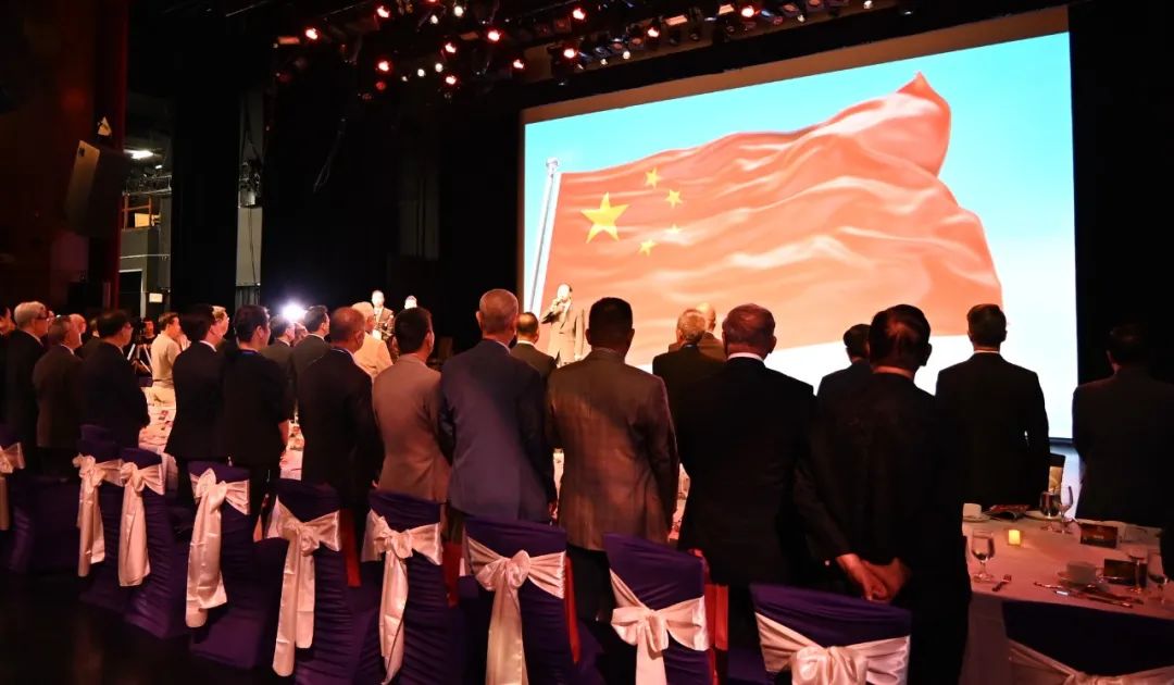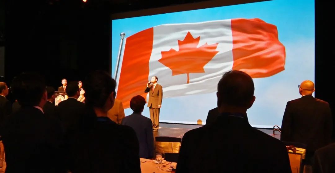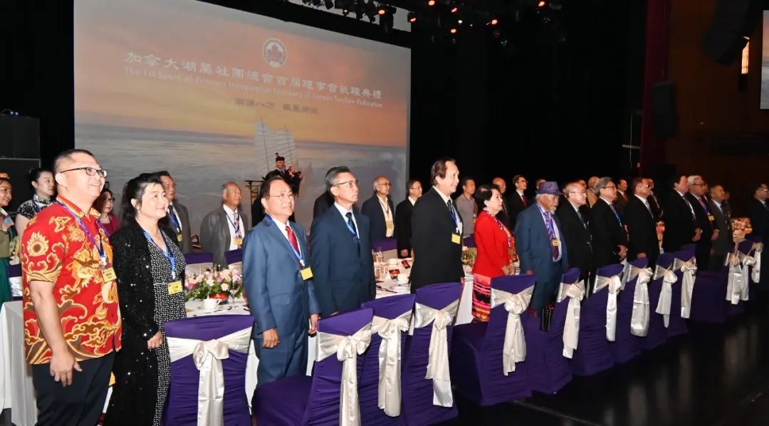 加拿大潮屬社團總會首屆理事會就職典禮在雄壯的加中兩國國歌聲中正式開始,由共同會長許錦松領唱。