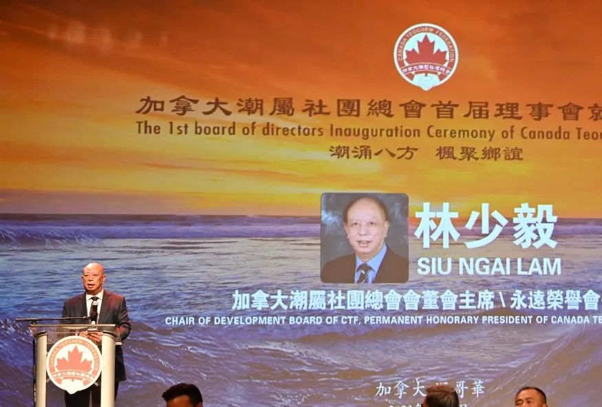 國際潮團總會執行副主席、加拿大潮屬社團總會會董會主席林少毅對各位嘉賓的到來表示熱烈歡迎和衷心感謝,他表示:加拿大潮商會、溫哥華潮州同鄉會正式合併成為加拿大潮屬社團總會,陳育昭會長當選為首任會長,這是加拿大潮人大團結、大發展的好事、喜事。相信在陳育昭會長及會董班子的帶領下,加拿大潮屬社團總會將承前啟後,進一步發揮橋樑紐帶作用,擴大潮人在全球的影響力,為加中兩國經貿文化發展做出更大貢獻。
