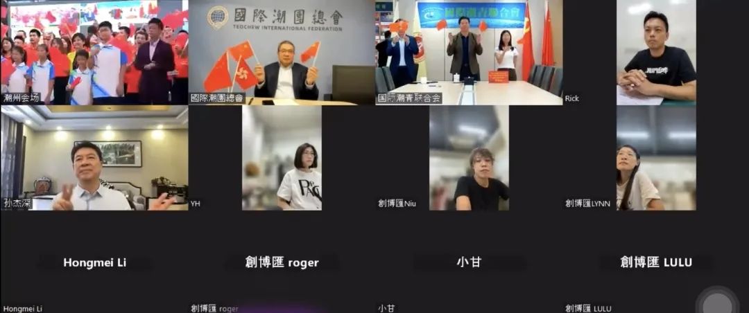 國際潮團總會執行主席、國際潮籍博士聯合會主席、國際潮青聯合會永遠會長陳幼南,國際潮青聯合會會長、深圳市潮汕青年商會會長李奕標,廣東省政協委員孫傑深,國際潮團總會常設秘書處副秘書長林梅,國際潮青聯合會副會長兼專職秘書長黃堅泰,副會長、國際潮籍博士聯合會臺灣理事李粵堅博士,國際潮青聯合會副會長李紅梅、常務會董陳大航,中華臺灣潮汕同鄉總會監事長、日本潮聯會副會長兼秘書長陳煥濤及國際潮團、潮青代表,尋根之旅公益夏令營小潮青、青年成長營潮青代表等相关成員代表共計50多人通過線上線下方式參加活動。李紅梅主持活動。