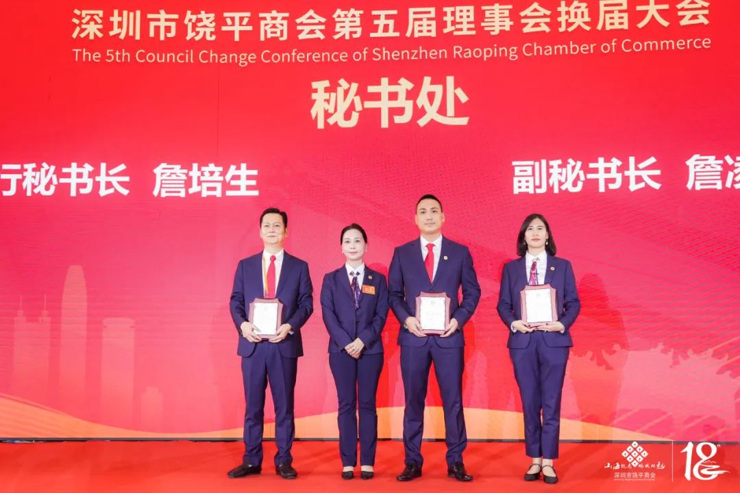 回顧過去,真摯地感謝商會歷屆領導、各兄弟社團商會以及每一位成員對商會工作的不懈支持!在這個令人振奮的時刻,我誠摯地向詹表會長當選深圳市饒平商會第五屆會長表示最熱烈的祝賀!作為一位年輕有活力、富有創新思維和擔當精神的領導者,相信詹表會長將為深圳市饒平商會帶來新的活力和成就,在他的引領下,商會將展翅高飛,煥發勃勃生機,鑄就新輝煌!也誠摯希望大家一如既往的支持深圳市饒平商會,合作共贏,共創美好未來!