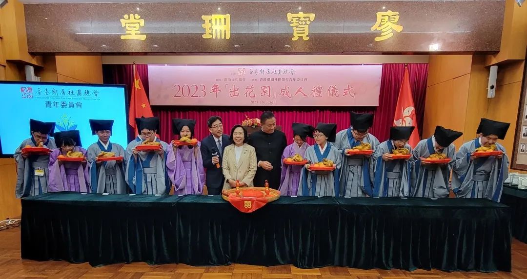 香港潮屬社團總會2023年8月26日假潮州會館舉辦了「2023出花園成人禮儀式」,以潮汕地區傳統的「出花園」風俗儀式,為廣大潮籍鄉親和市民展示這一獨特的潮汕風俗,藉以加深市民對潮汕傳統文化的認識,並在弘揚潮汕文化的同時傳承中華美德。