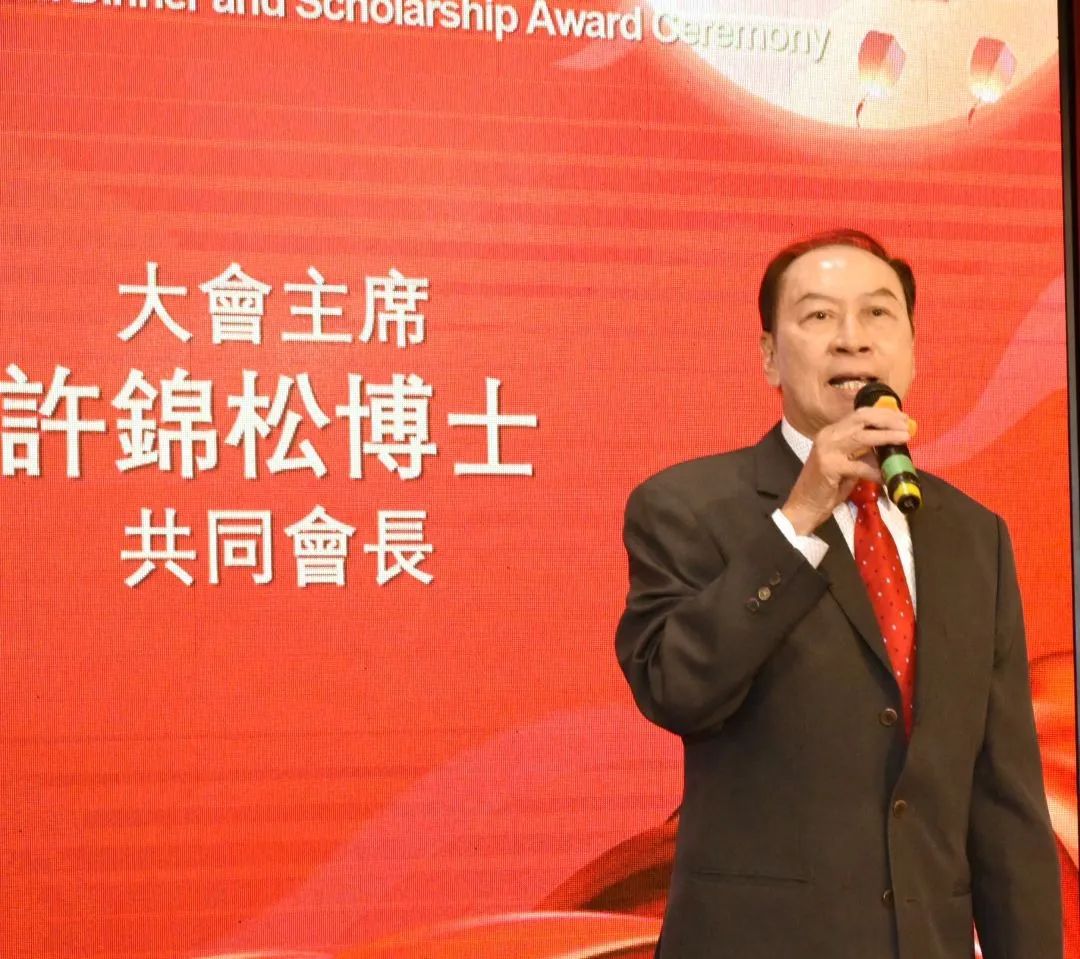 加拿大潮屬社團總會共同會長兼今晚大會主席許錦松博士致辭,他感謝陳育昭會長的信任和委託,作為加拿大潮屬社團總會首屆「中秋聯誼暨獎學金頒獎典禮晚會」的「大會主席」籌備此次活動,在多位理事成員、秘書長及秘書處的協力下,順利做好會務籌備。