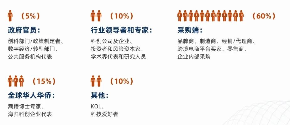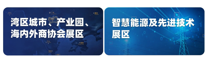 灣區城市、產業園、海內外商協會展區:城市招商引資、科創產業園、人工智慧及其他相關行業產業園區、行業協會、垂直行業平臺、海內外商會等;智慧能源及先進技術展區:可再生能源、儲能、智能電網、人工智慧、大數據、雲計算、物聯網、區塊鏈、智能製造、航空航太、生物醫藥等領域的創新技術應用及材料等;