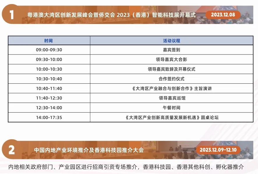 粵港澳大灣區創新發展峰會暨僑交會2023(香港)智能科技展,以「融聚創新,共鑄未來」為主題,聚焦科技前沿趨勢、融合粵港澳大灣區產業鏈資源、人才、資金等優勢,推動科技產業發展。大會將邀請知名專家和政府官員就粵港澳大灣區產業協同創新進行演講,同時彙聚粵港澳地區優勢產業帶資源,海外華人華僑社團以及中國內陸省市發展需求,預計吸引各界參會人員超過8000人。