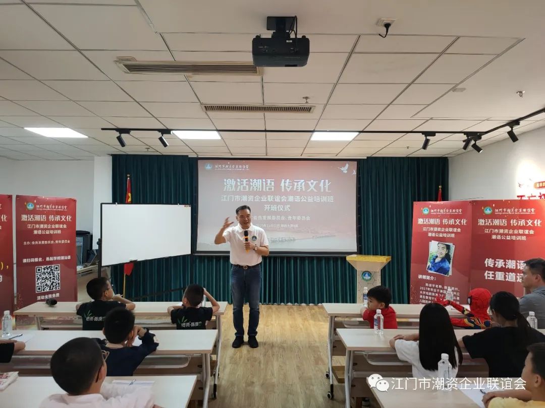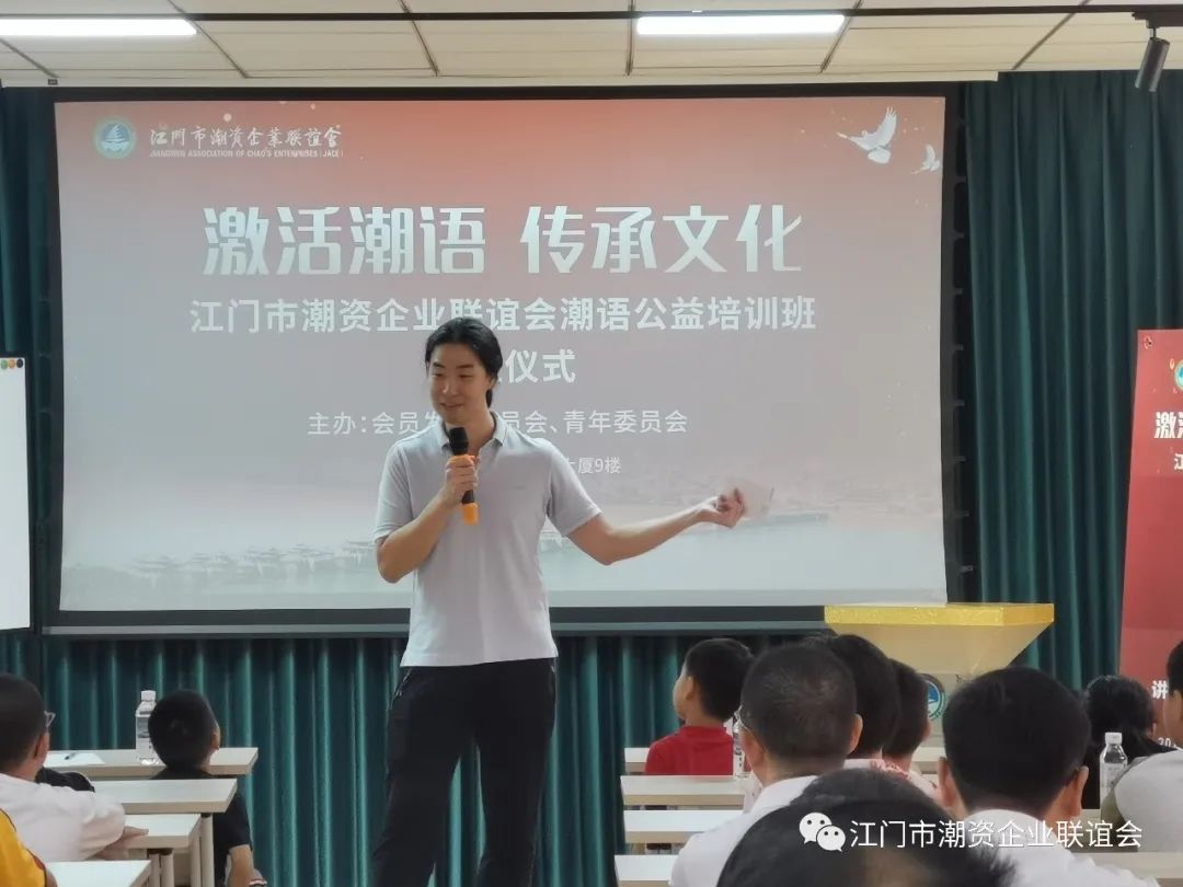潮語(潮汕話)是潮汕人的身份象徵,是潮汕人相互溝通的橋樑和紐帶,為保護與傳承潮語,弘揚與傳承潮汕文化,啟動大家呾潮汕話的興趣,提高潮籍新生代的潮語水準,增強大家對潮汕文化的認同感,江門市潮資企業聯誼會會員發展委員會和青年委員會聯合主辦「啟動潮語 傳承文化」江門市潮資企業聯誼會潮語公益培訓班,2023年11月11日下午在潮商大廈9樓舉行開班儀式,共有30多名潮籍學員「邑」起學呾潮汕話。