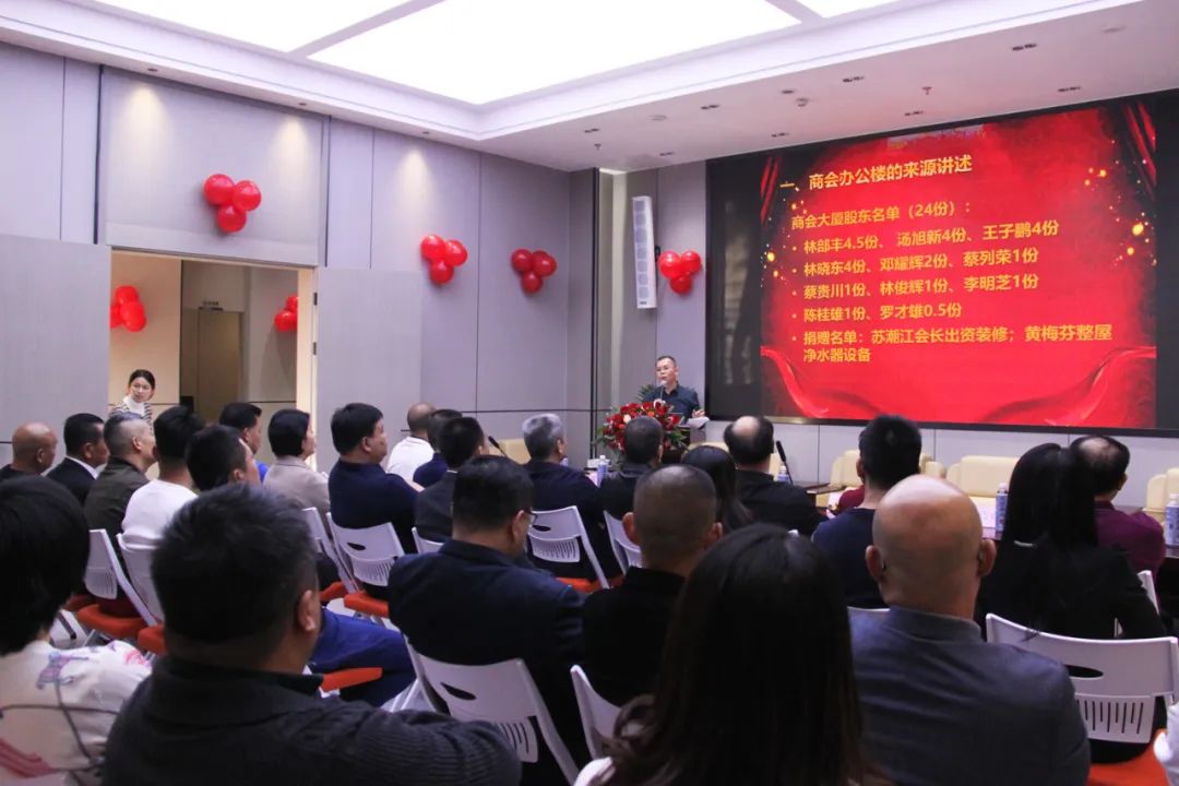陳樹彬秘書長向參會成員介紹商會辦公場所的來源和基本情況