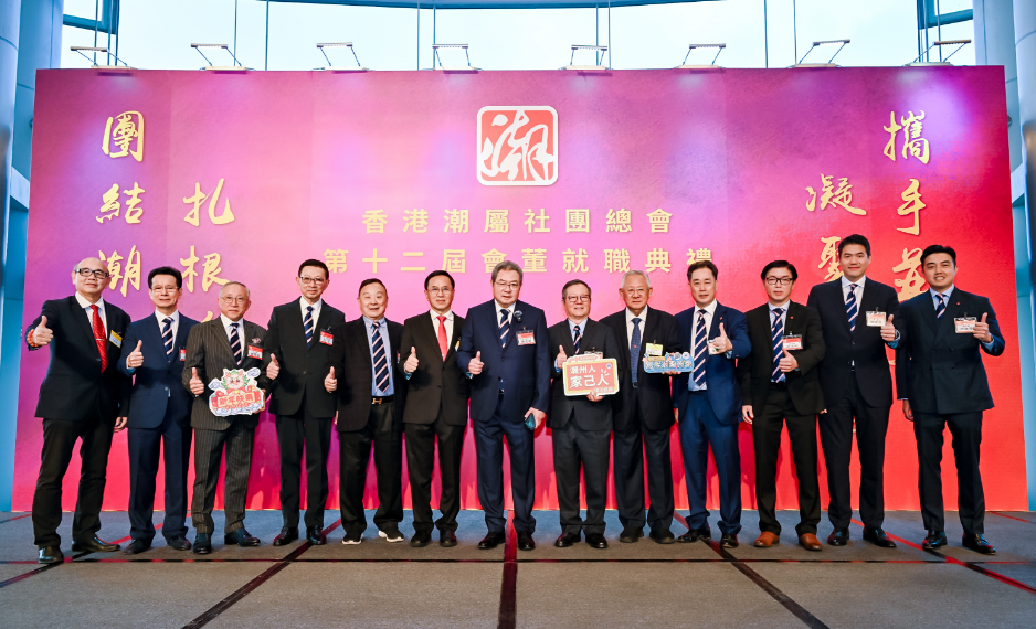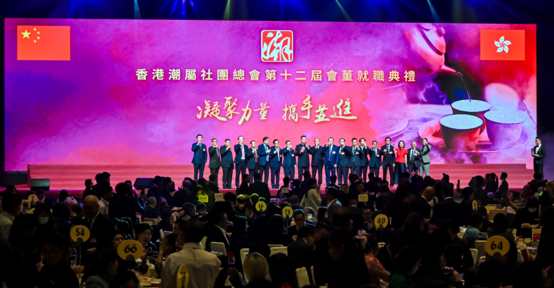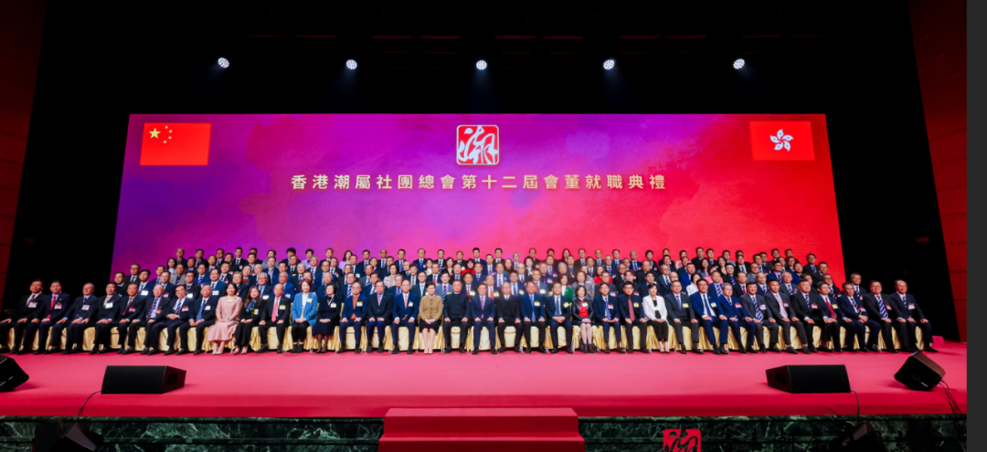 香港潮屬社團總會第十二屆會董就職典禮,2024年1月16日假座香港會議展覽中心隆重舉行。香港特別行政區行政長官李家超,前行政長官林鄭月娥,中聯辦秘書長王松苗,政務司司長陳國基,立法會主席梁君彥,行政會議召集人葉劉淑儀,潮州市委書記、市人大常委會主任何曉軍,政制及內地事務局局長曾國衞,廣東省委統戰部副部長陳麗文為主禮嘉賓。