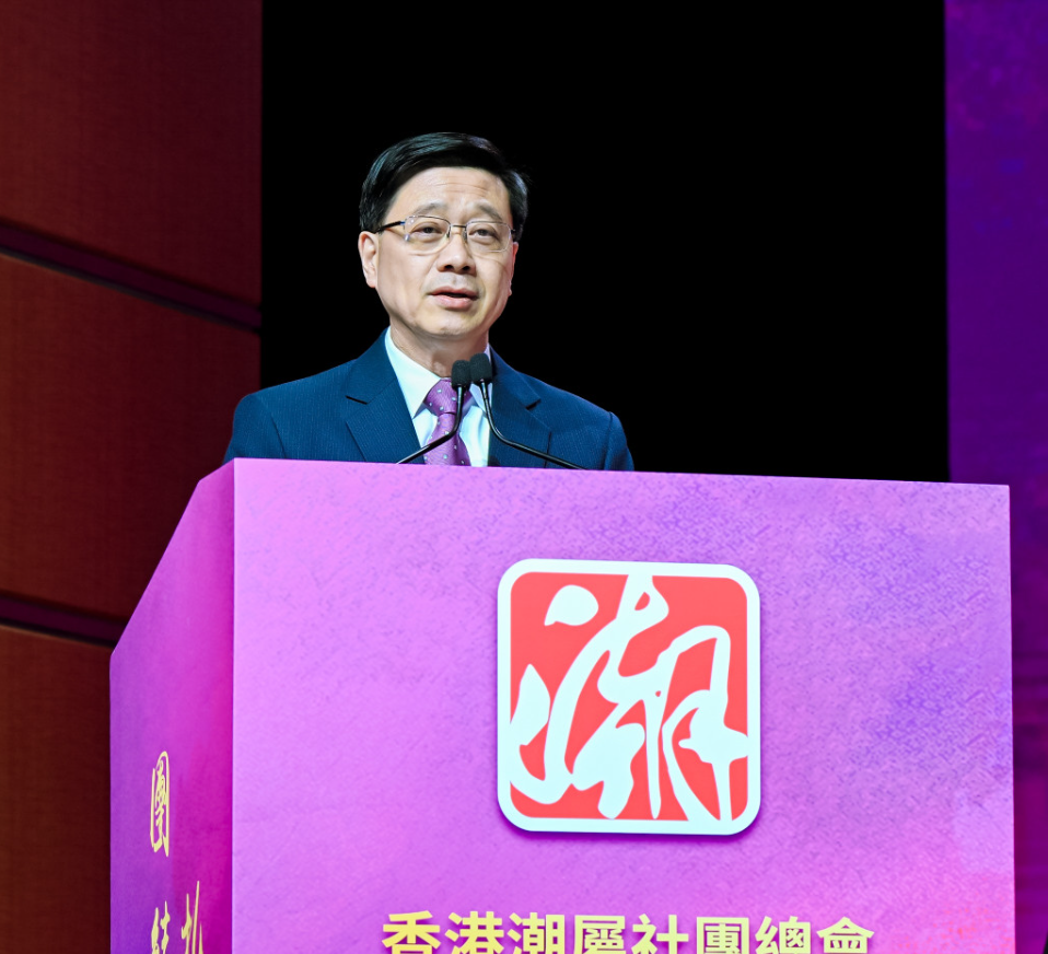 行政長官李家超致辭,他表示,居港潮籍鄉親超過一百萬,多年來憑着克勤克儉、勇於開拓的精神,在各行各業取得傑出成就,推動香港的經濟發展,建樹良多。香港潮屬社團總會自2001年成立以來,一直聯繫鄉親,凝聚社團力量,促進香港繁榮穩定,支持家鄉發展。總會努力傳揚潮人傳統文化,積極擔當香港、內地和海外潮人的溝通橋樑。總會及各屬會對服務社區一樣不遺餘力,支持特區政府依法施政、實現良政善治。在區議會選舉中帶領鄉親為參選者打氣,鼓勵市民踴躍投票,為特區完善地區治理注入重要力量,體現團結一致、愛國愛港的精神,我肯定你們的貢獻。