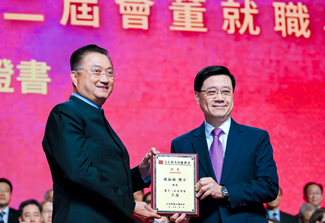 行政長官李家超(右)向陳振彬(左)頒發主席證書