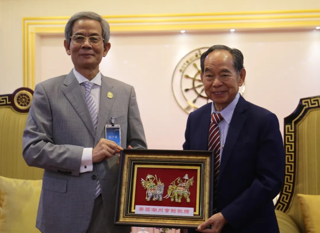 到訪泰國潮州會館期間,陳才雄會長在座談會上表示,泰國潮州會館是泰國潮團僑社和諧發展的踐行者和代表者。在近代史中,眾多潮人僑領久經風霜、艱苦奮鬥,為泰國的社會建設和對中泰友好往來及各領域發展做出了重要貢獻。在泰潮商人才輩出,許多已是行業的精英翹楚,在製造加工、投資貿易、金融、建築等各行業領域閃閃發光。你們不僅是潮商的驕傲,更是泰國華商的楷模。